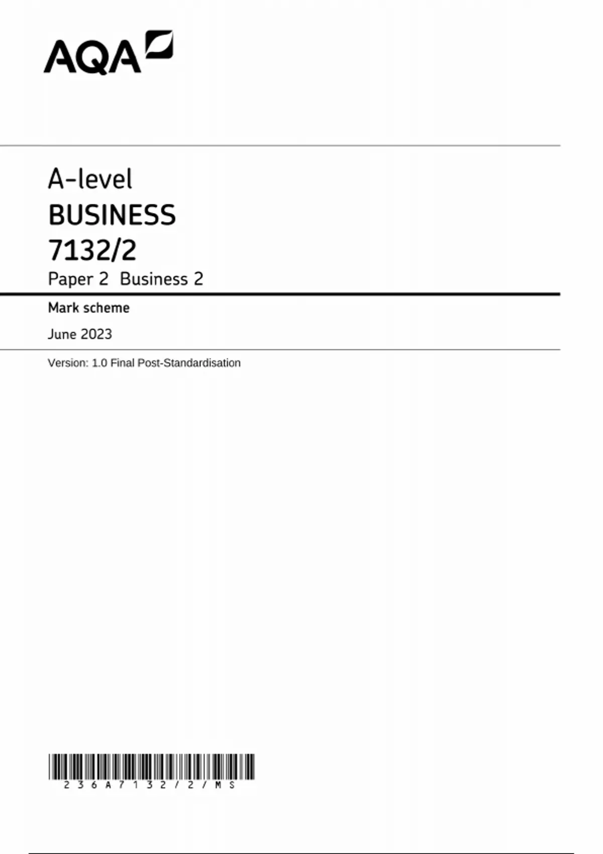 AQA A LEVEL BUSINESS MARK SCHEME PAPER 2 2023 [7132/2: Business 2]