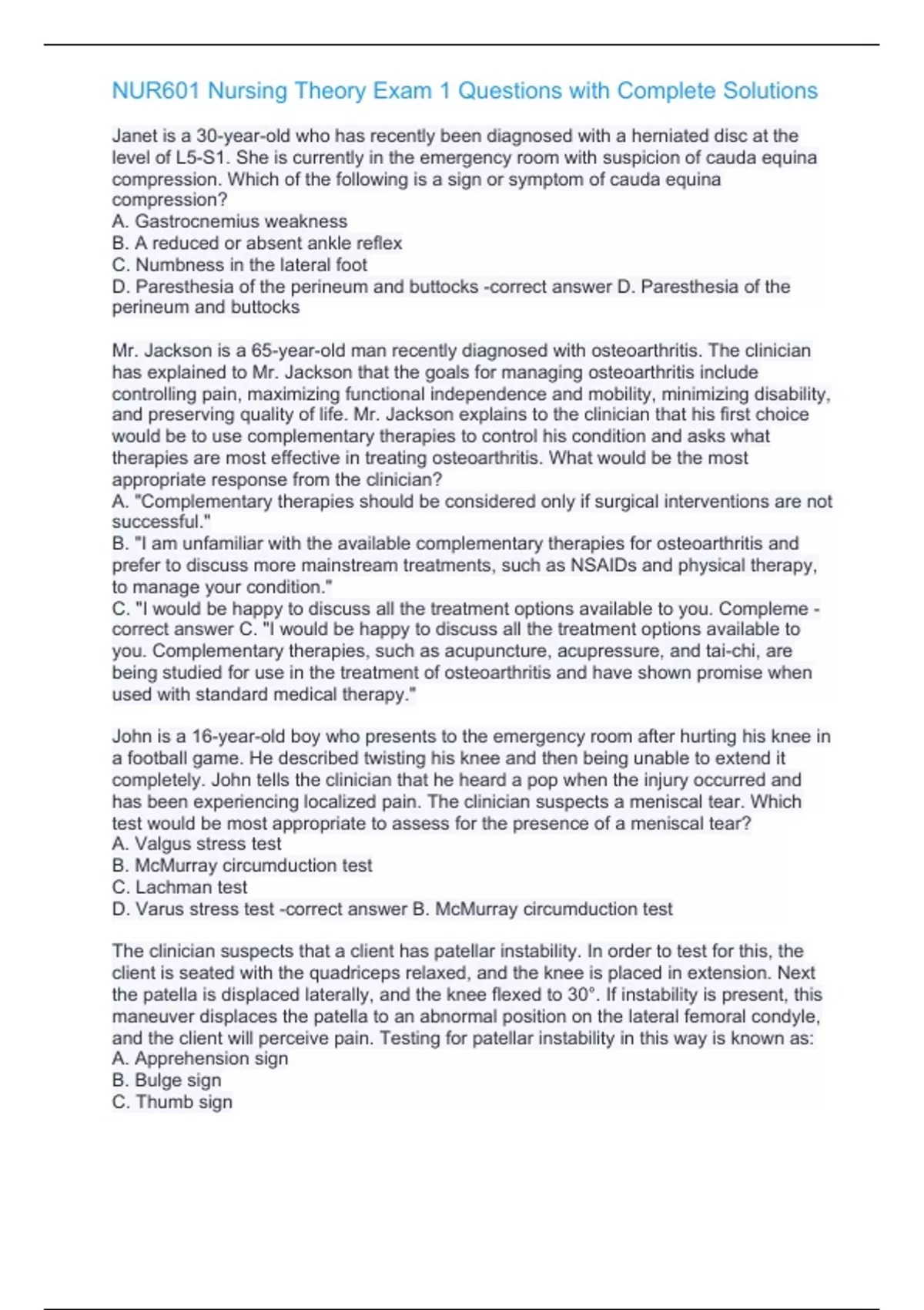NUR601 Nursing Theory Exam 1 Questions with Complete SolutionsNUR601 Nursing Theory Exam 1 Questions with Complete Solutions