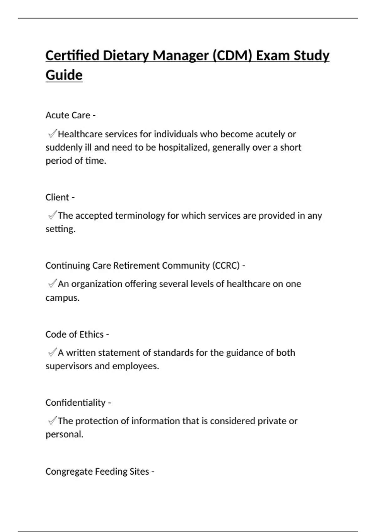 Certified Dietary Manager (CDM) Exam Study Guide.