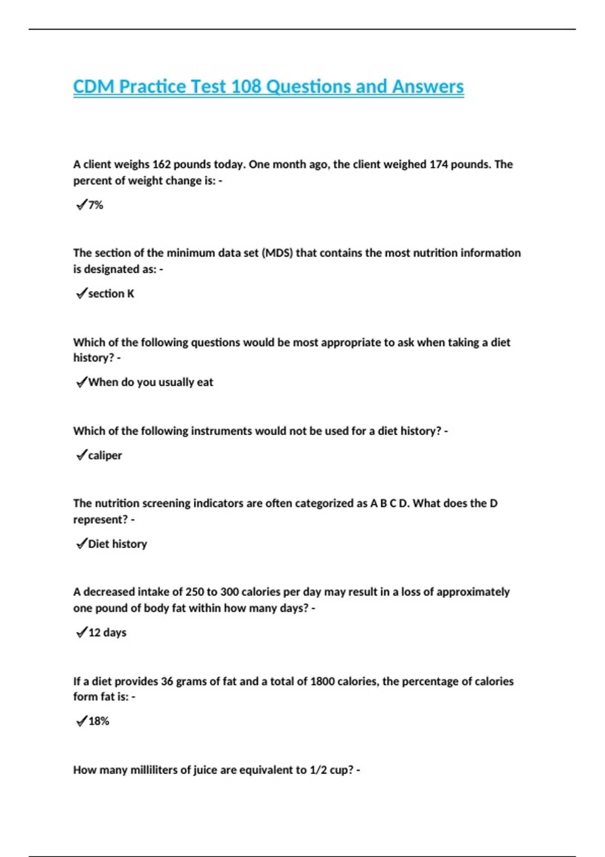 CDM Practice Test 108 Questions and Answers