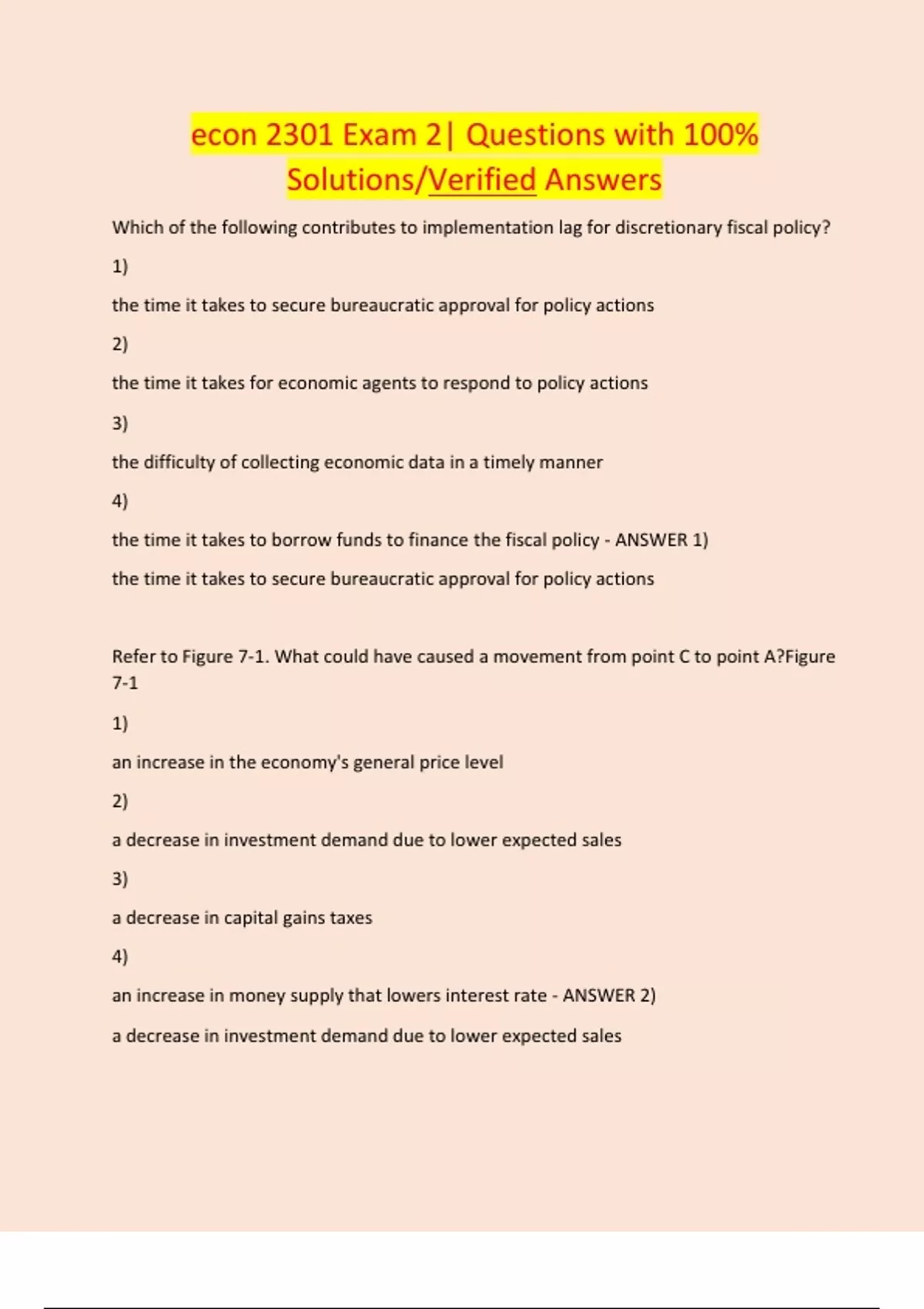 econ 2301 Exam 2| Questions with 100% Solutions/Verified Answers