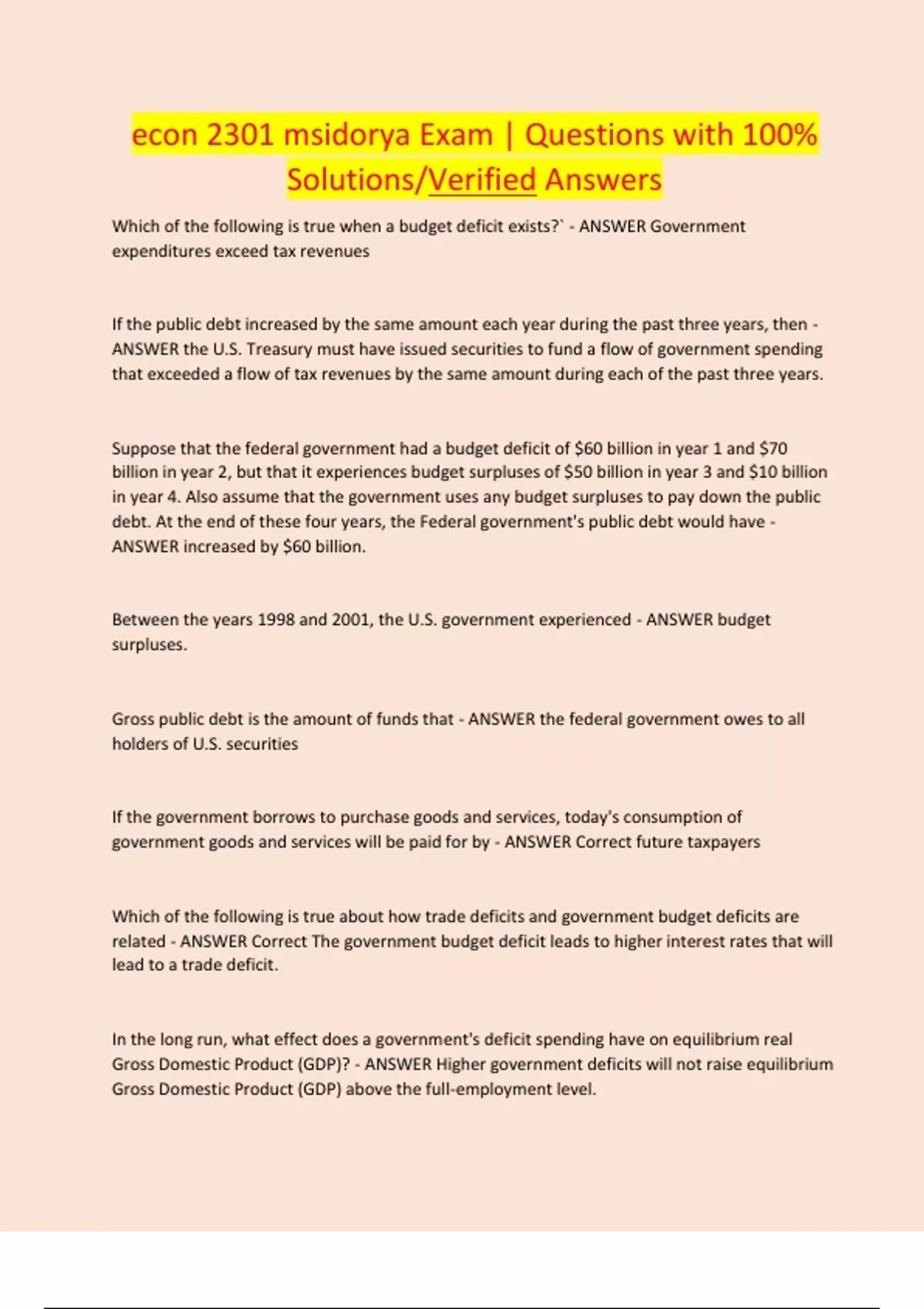 econ 2301 msidorya exam questions with 100 solu