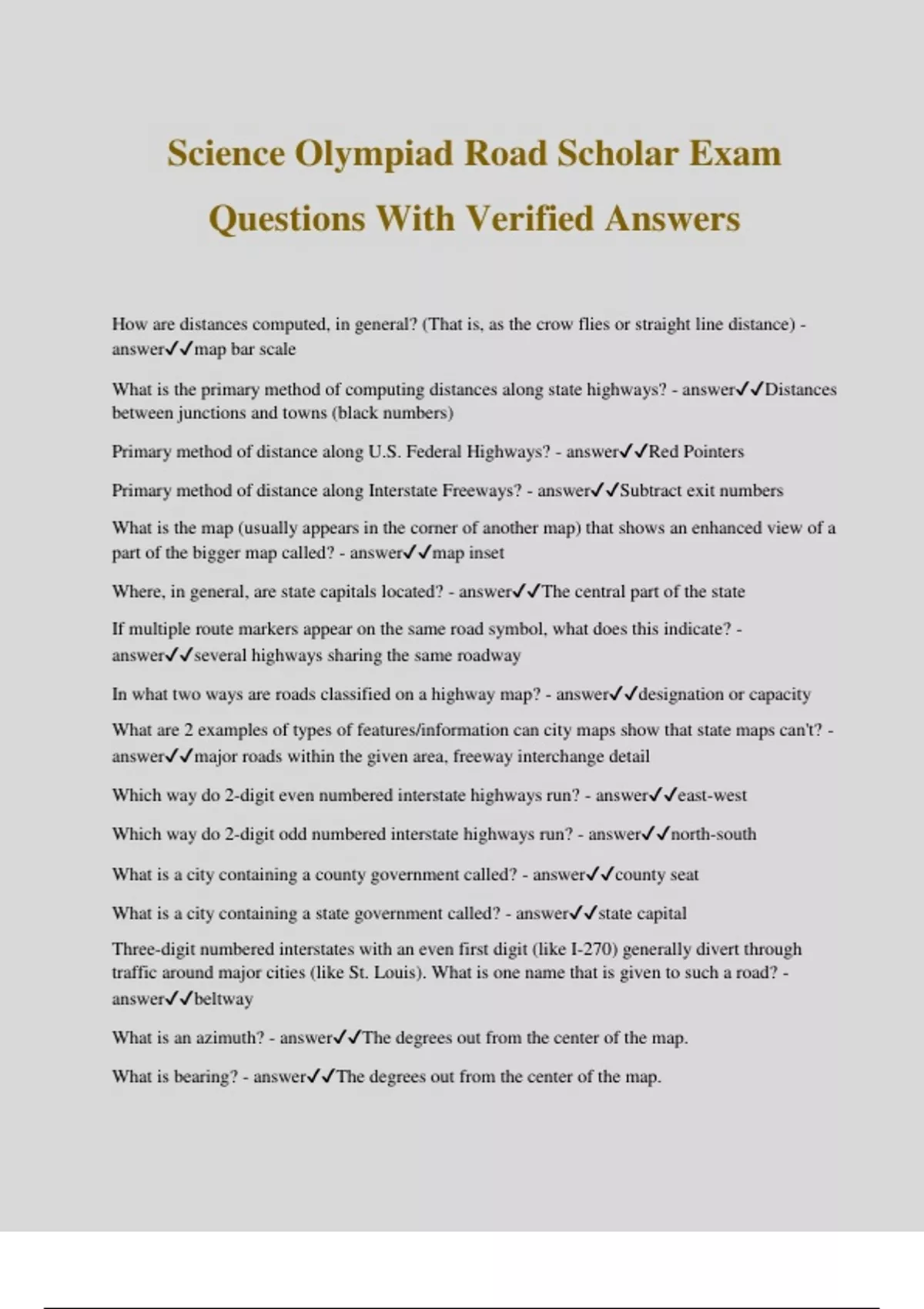 Science Olympiad Road Scholar Exam Questions With Verified Answers