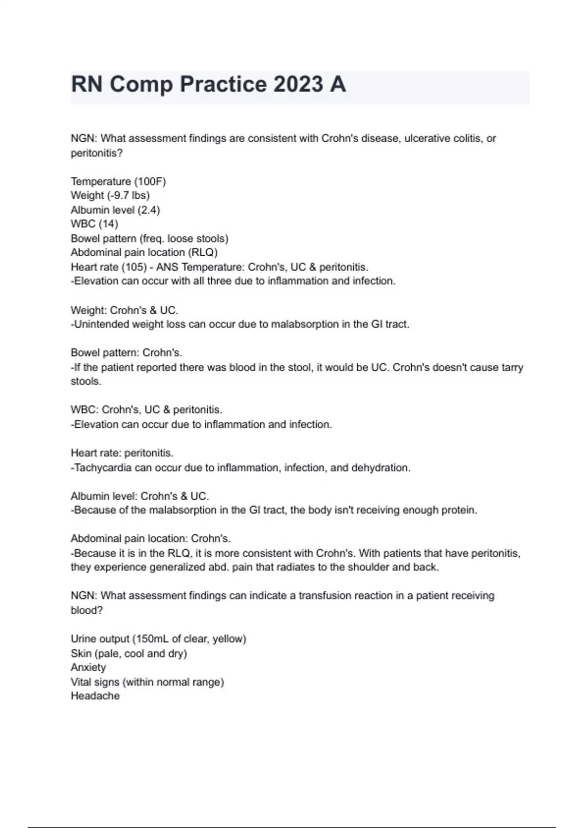 RN Comp Practice 2024/2025 A Exam With Questions & Answers Already Graded A.