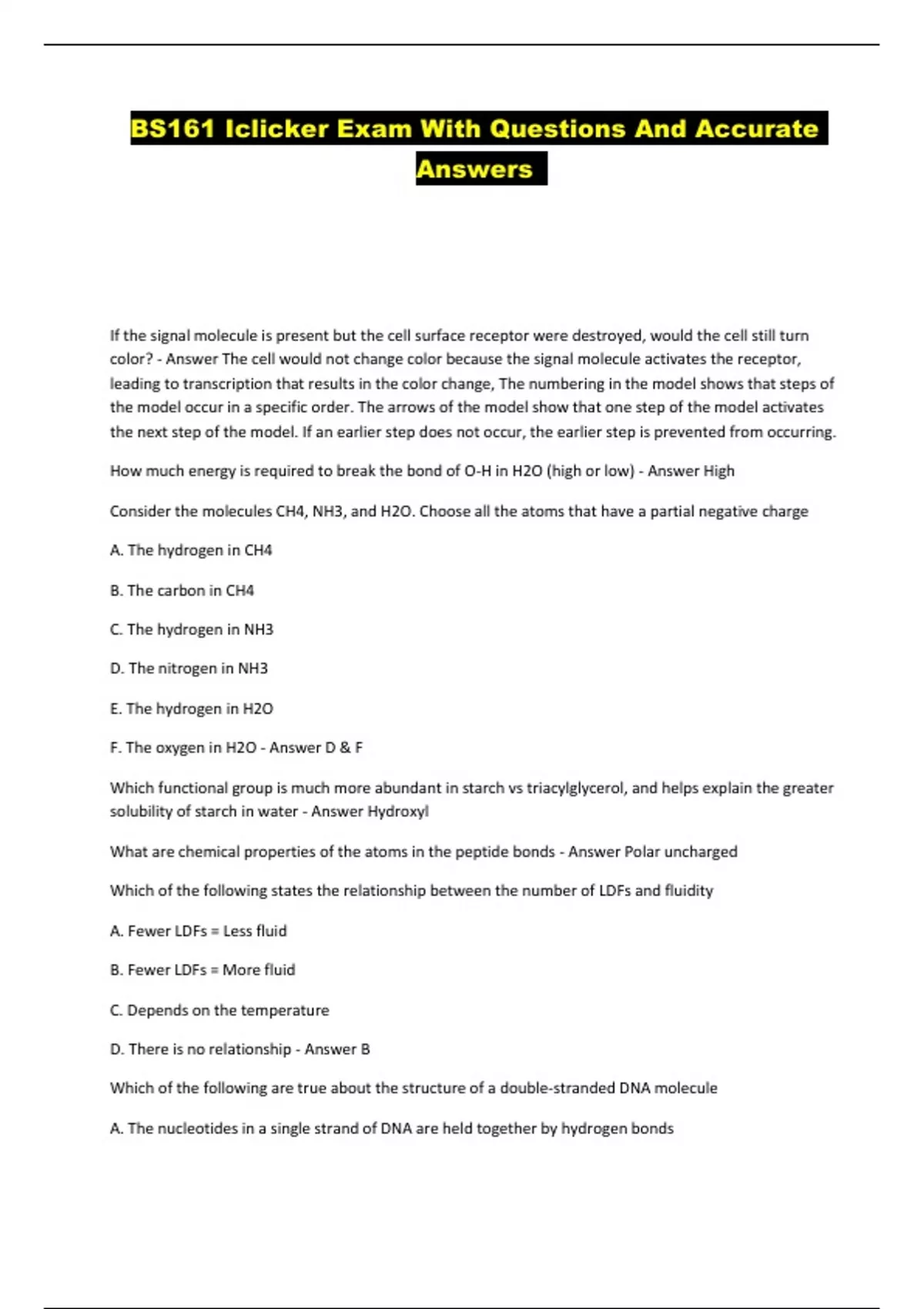 BS161 Iclicker Exam With Questions And Accurate Answers