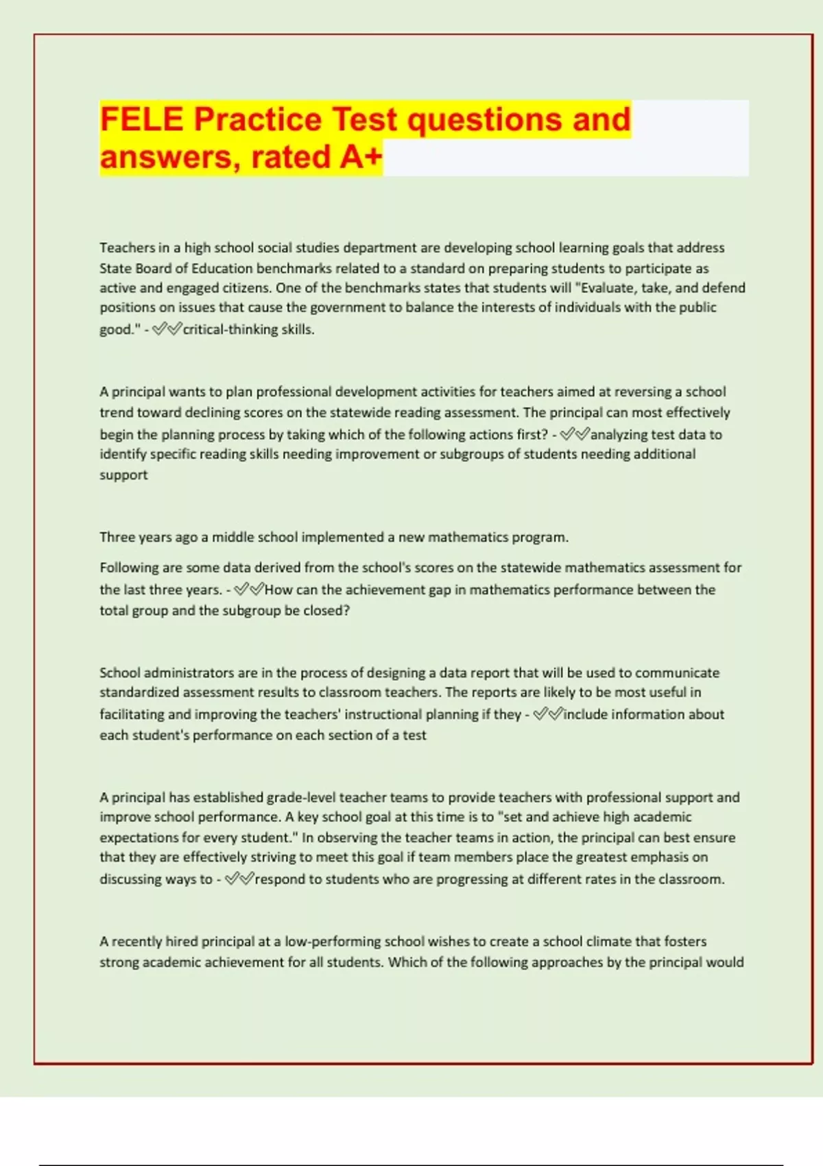 FELE Practice Test questions and answers, rated A+| latest update 2024/25|