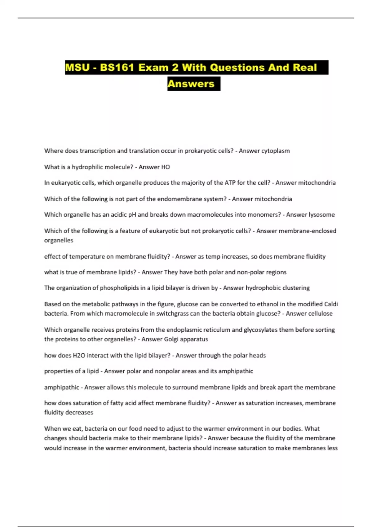 MSU - BS161 Exam 2 With Questions And Real Answers ...