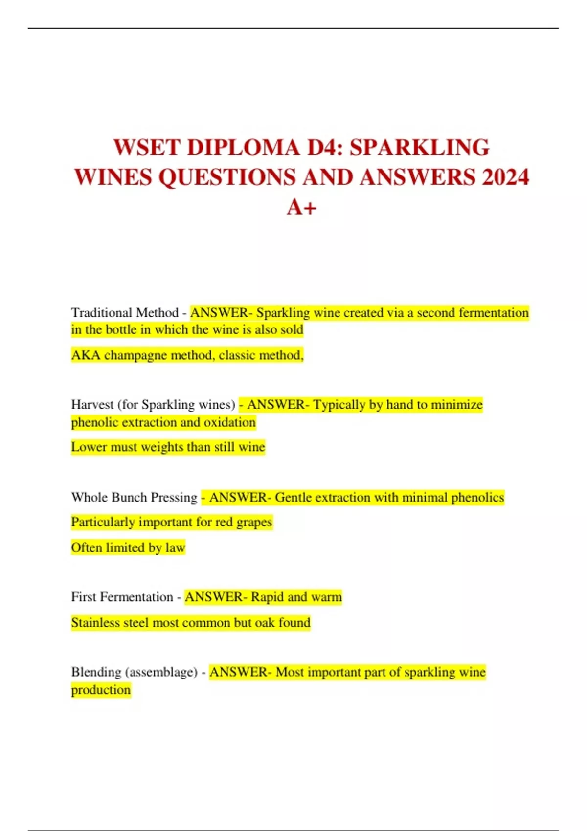 WSET DIPLOMA D4: SPARKLING WINES QUESTIONS AND ANSWERS 2024 A+ WSET DIPLOMA D4: SPARKLING WINES QUESTIONS AND ANSWERS 2024 A+ WSET DIPLOMA D4: SPARKLING WINES QUESTIONS AND ANSWERS 2024 A+ WSET DIPLOMA D4: SPARKLING WINES QUESTIONS AND ANSWERS 2024 A+