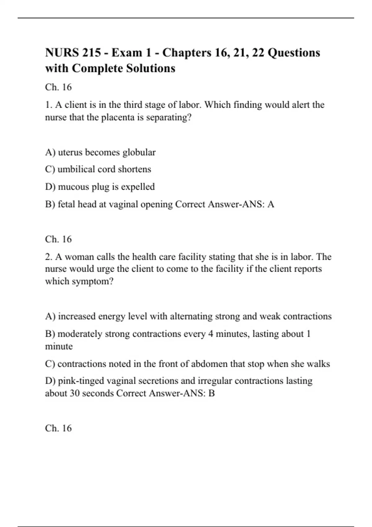 NURS 215 - Exam 1 - Chapters 16, 21, 22 Questions with Complete Solutions