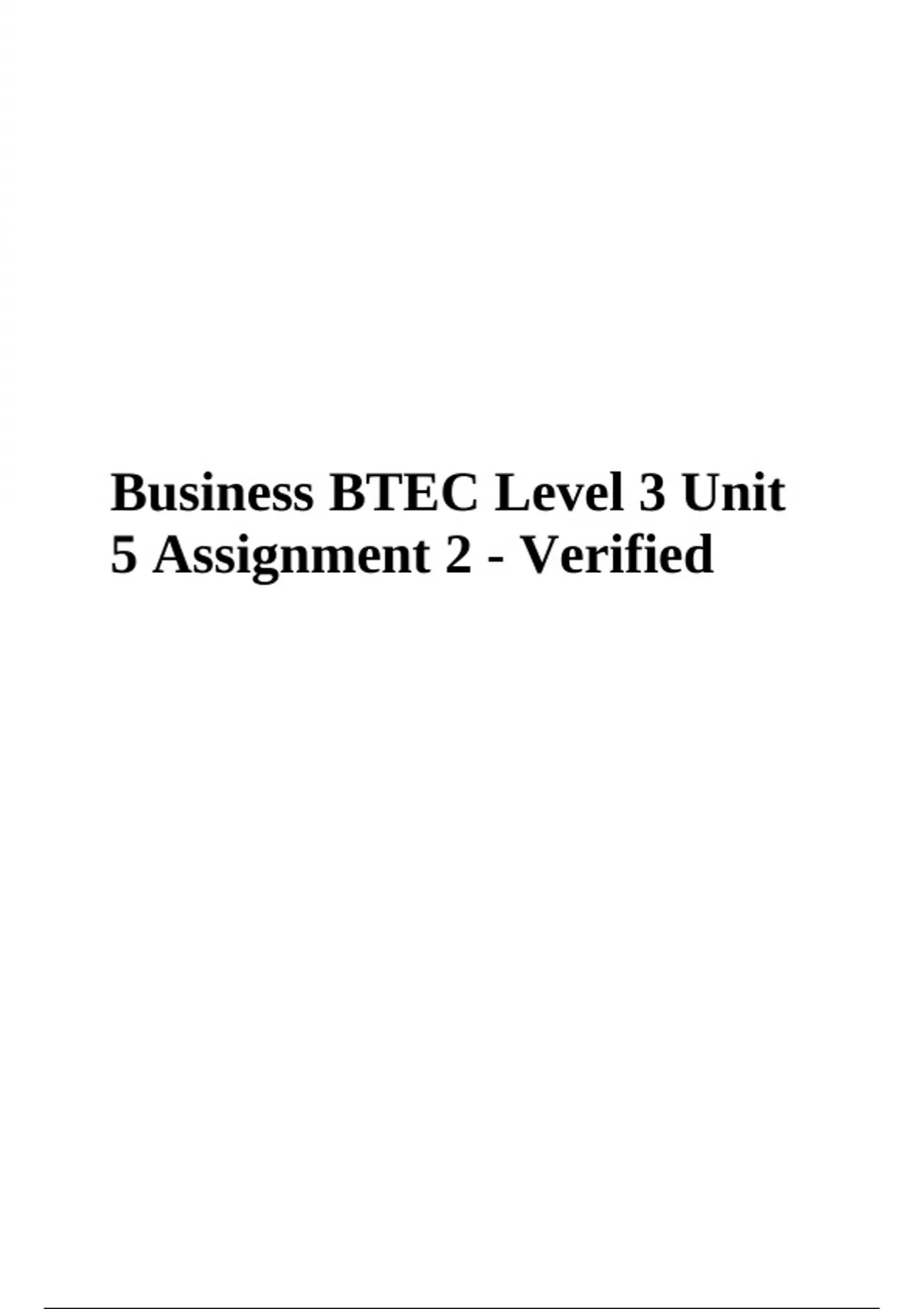 Business BTEC Level 3 Unit 5 Assignment 2 - 100% Verified.