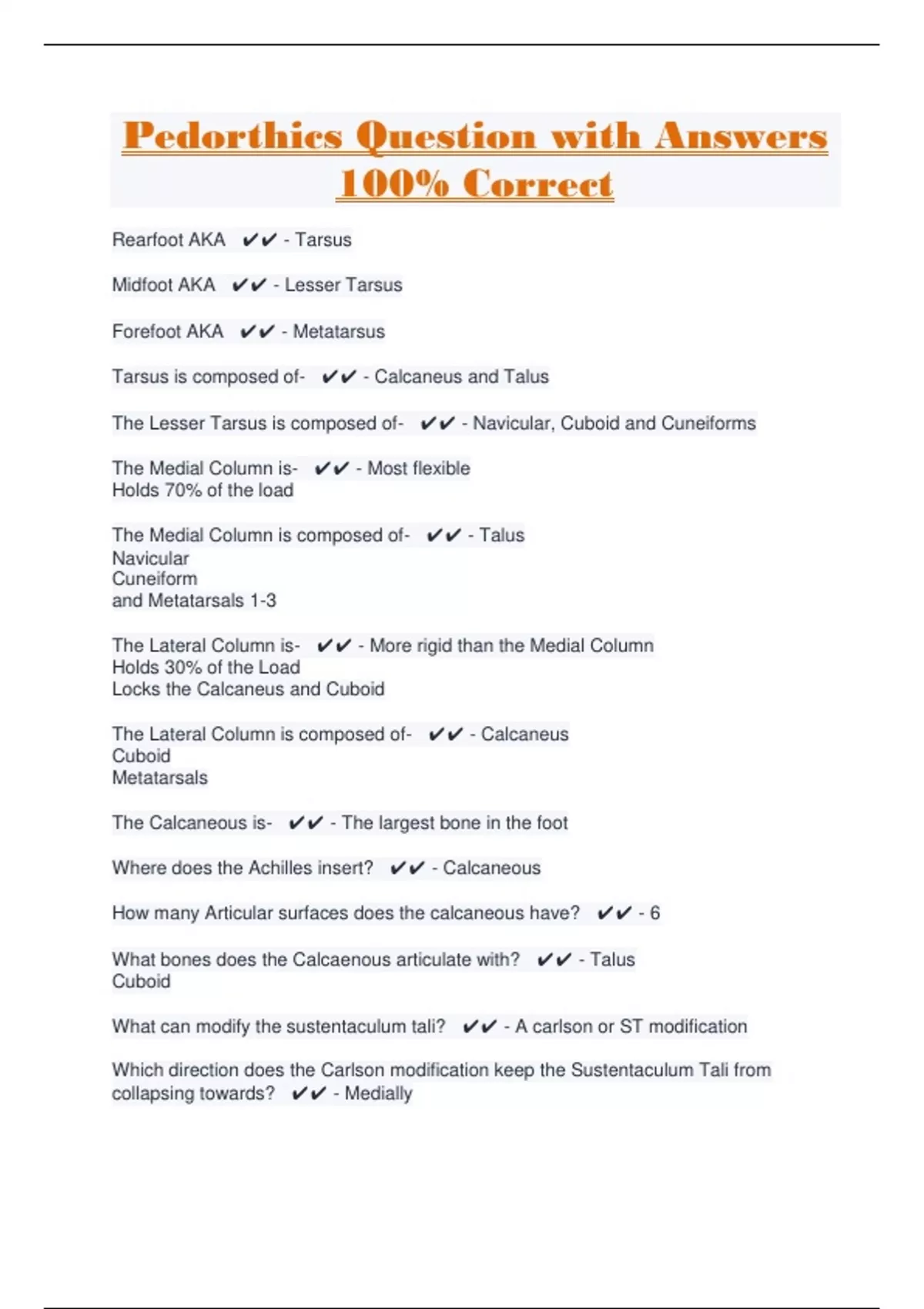 Pedorthics Question with Answers 100% Correct