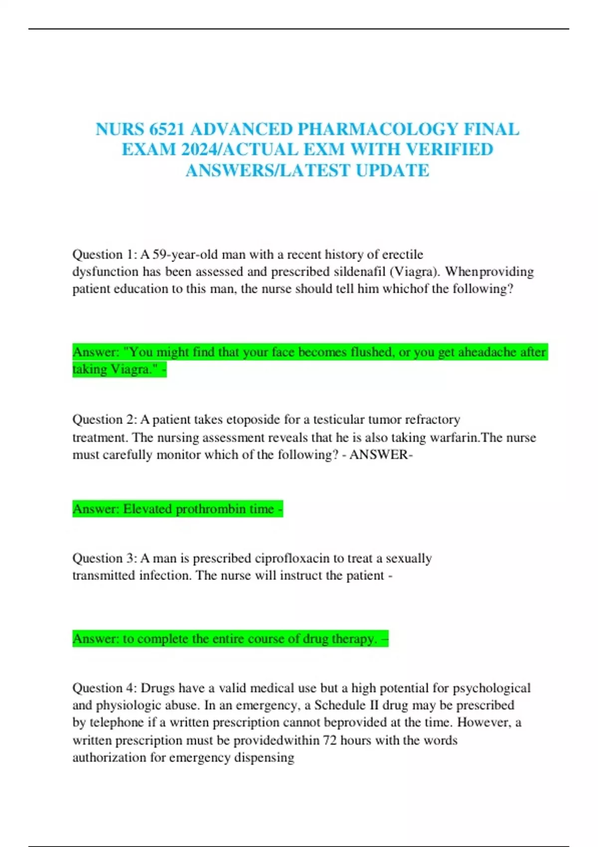 NURS 6521 ADVANCED PHARMACOLOGY FINAL EXAM 2024/ACTUAL EXM WITH VERIFIED ANSWERS/LATEST UPDATE