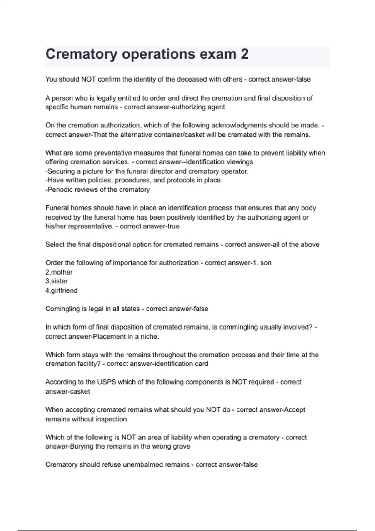 Crematory operations exam 2