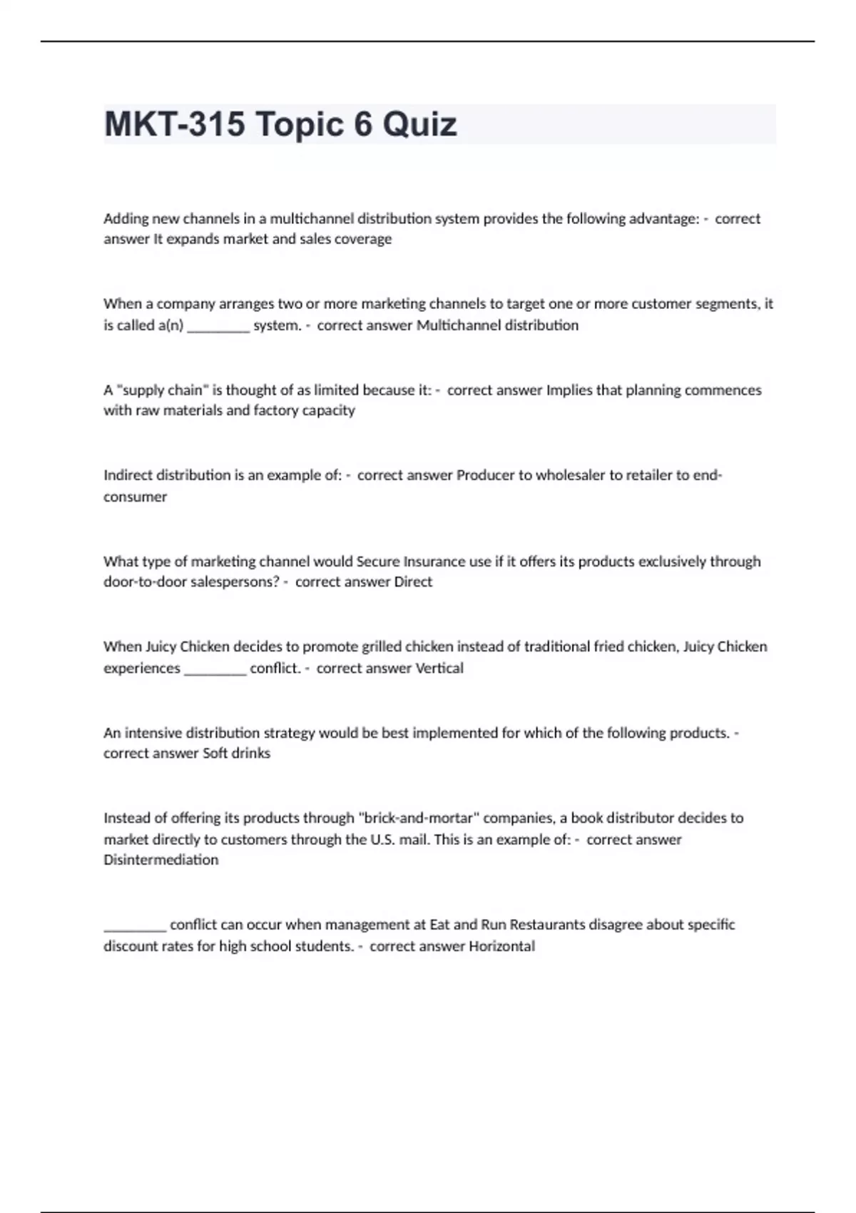 MKT-315 Topic 6 Quiz questions and answers rated A+ 2024