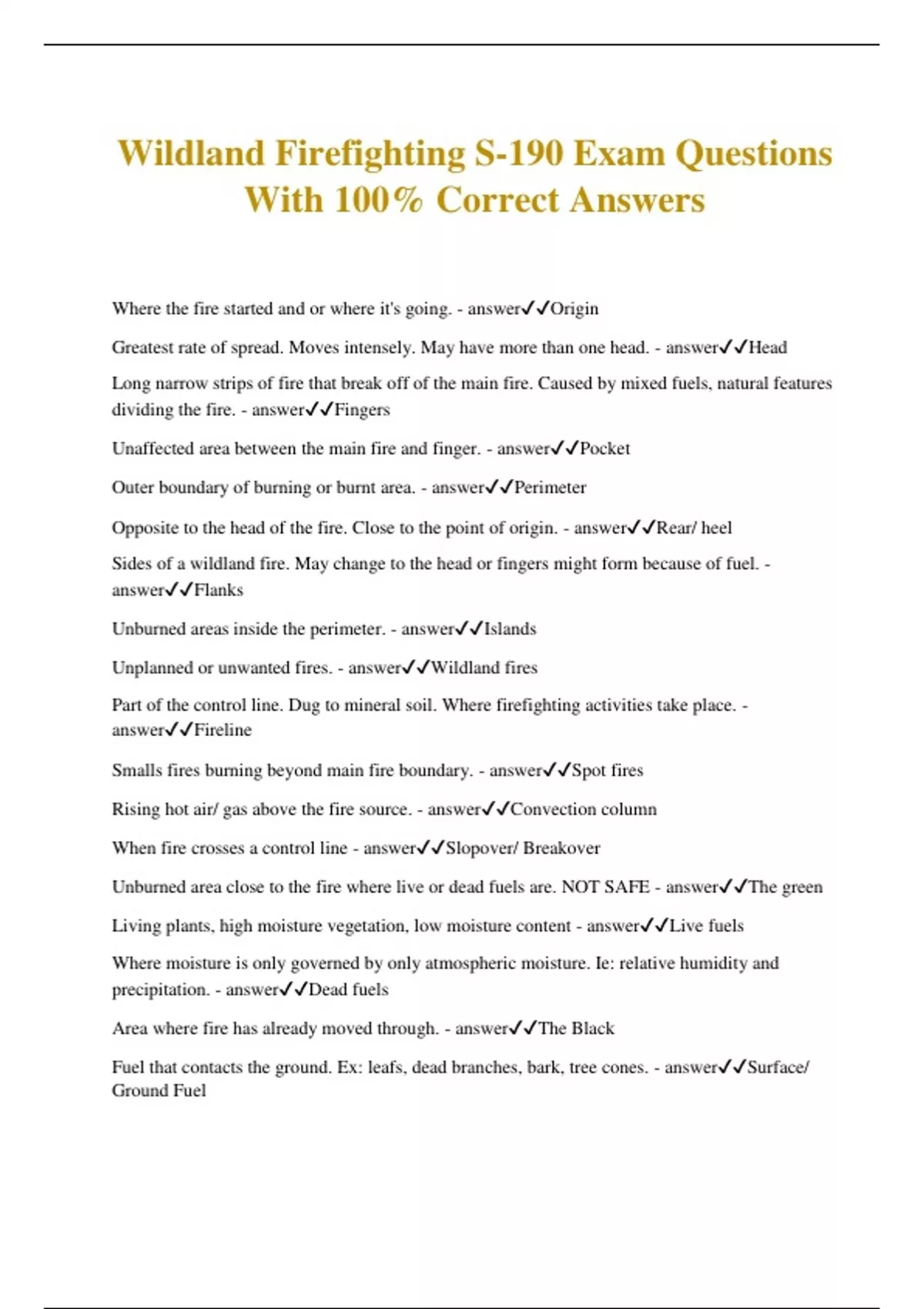 Wildland Firefighting S-190 Exam Questions With 100% Correct Answers