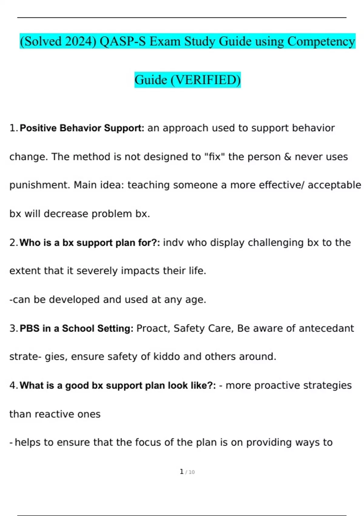 QASP-S Exam Study Guide using Competency Guide 2024 100% GUARANTEED PASS