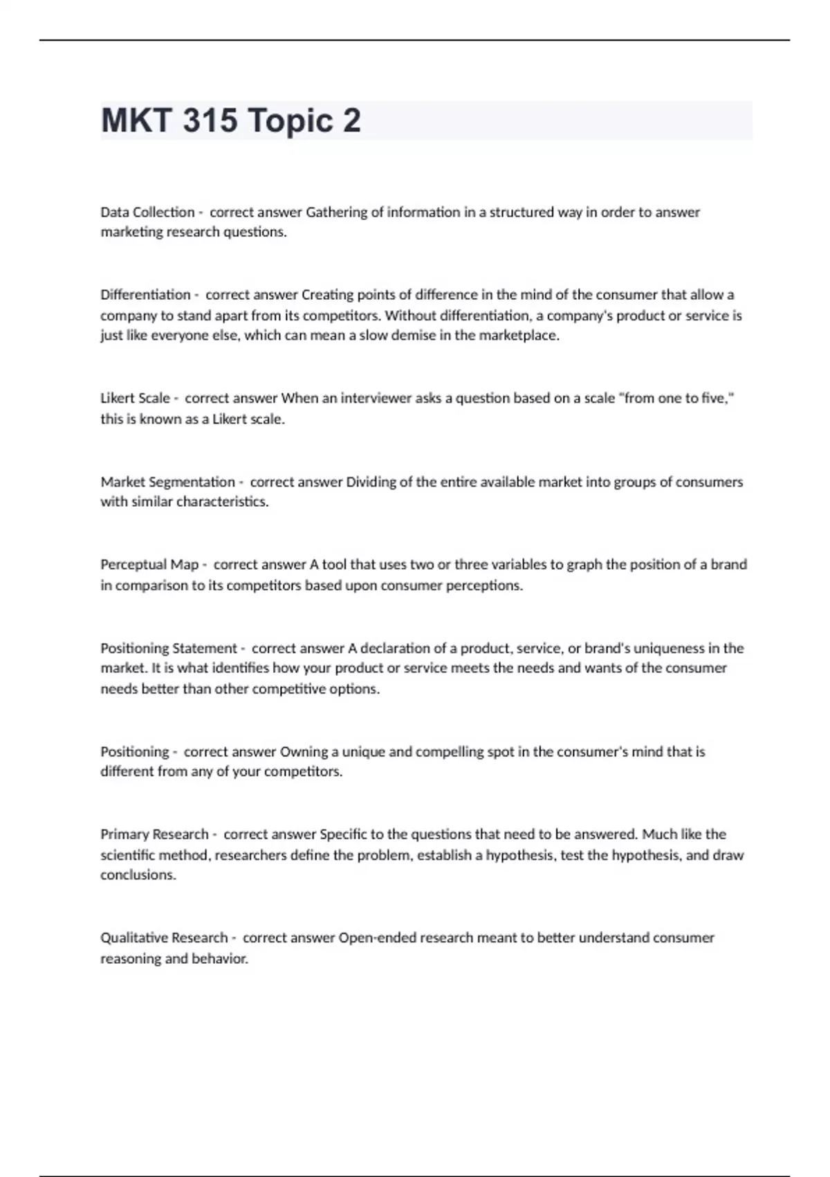 MKT 315 Topic 2 questions and answers 100% correct 2024