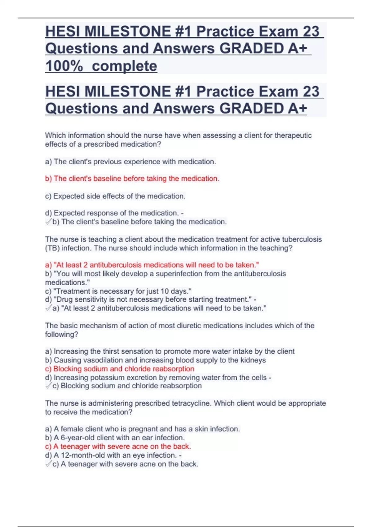 HESI MILESTONE #1 Practice Exam 23 Questions and Answers GRADED A+ 100% complete