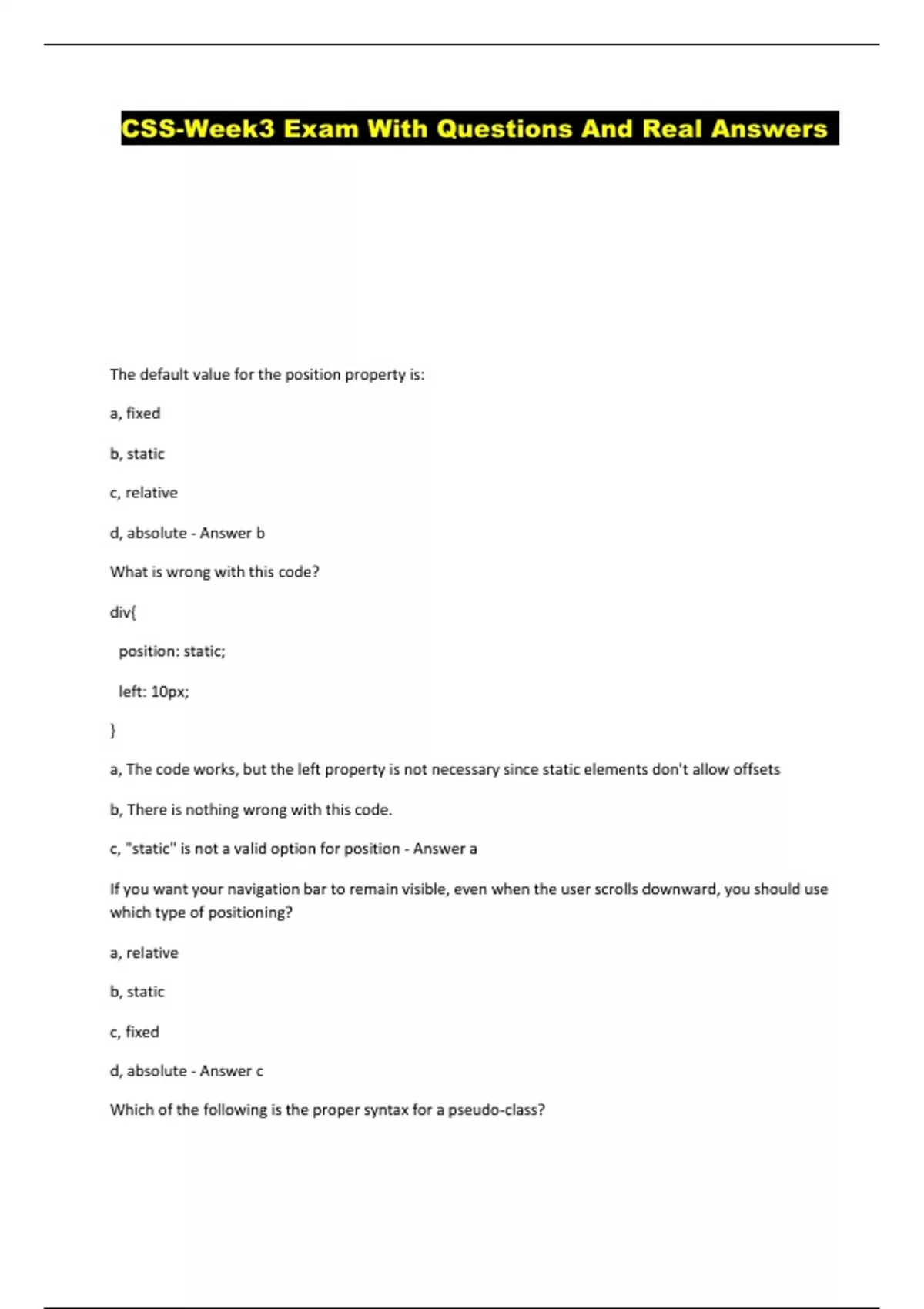 CSS-Week3 Exam With Questions And Real Answers ...