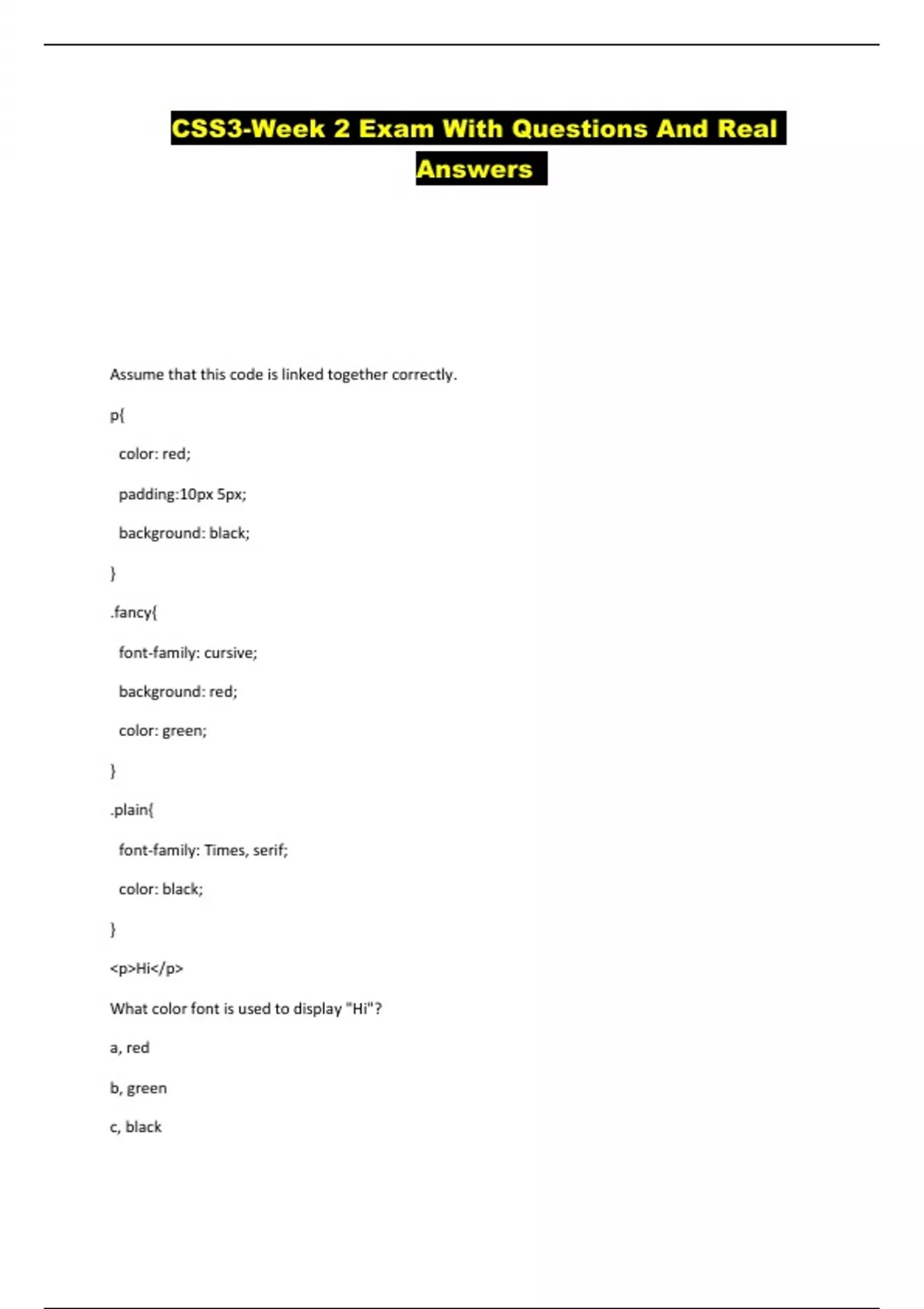 CSS3-Week 2 Exam With Questions And Real Answers