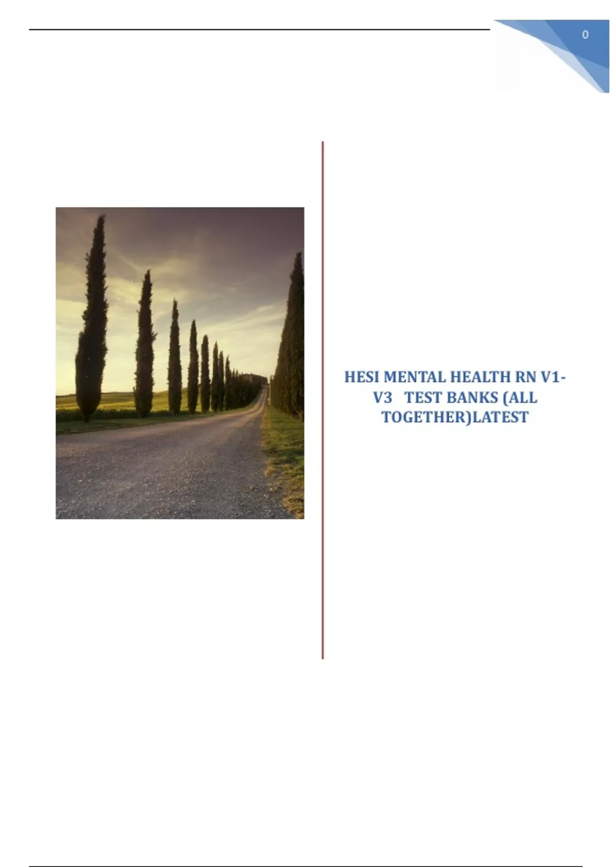 HESI MENTAL HEALTH RN V1-V3 TEST BANKS (ALL TOGETHER) LATEST