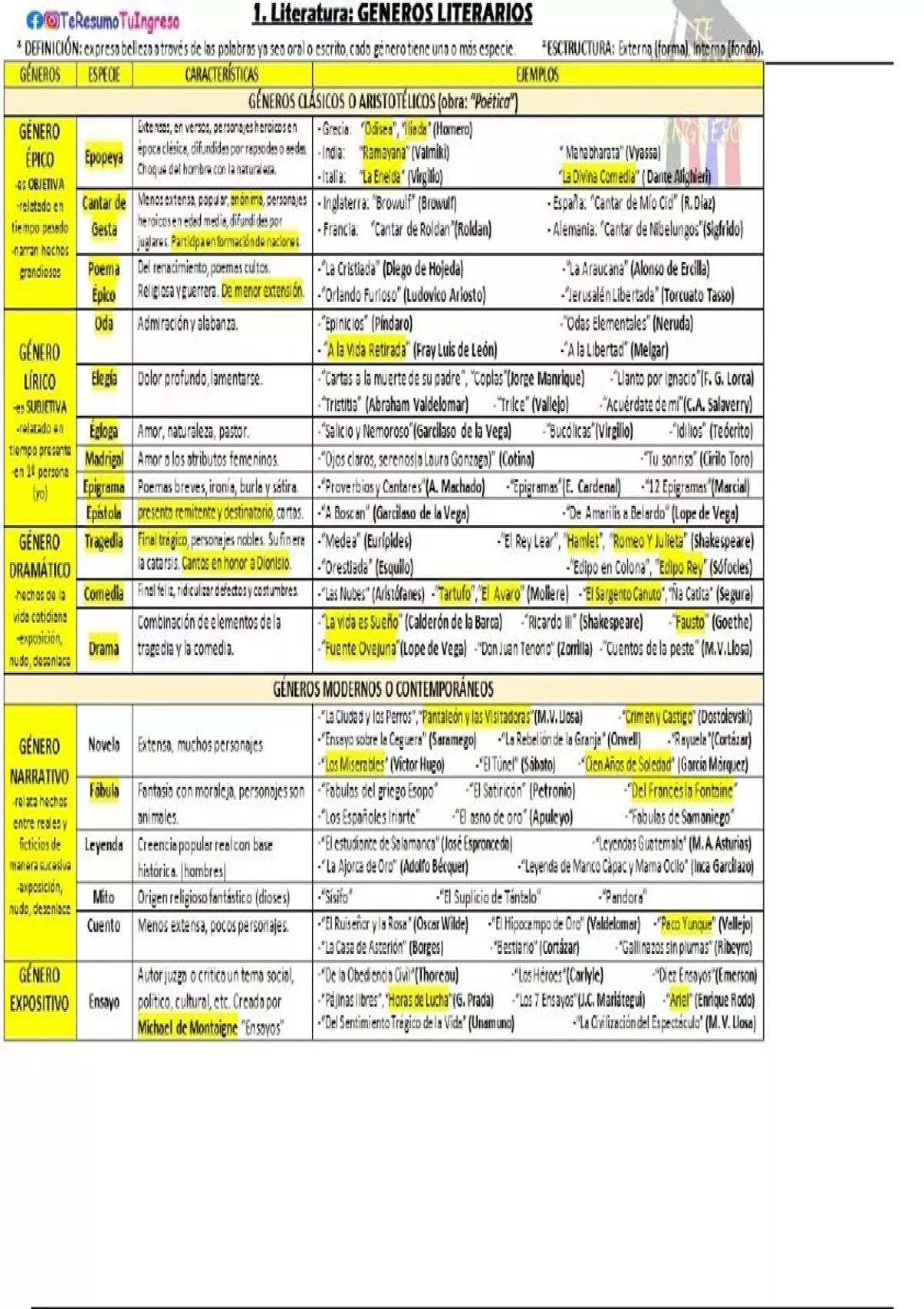 RESUMEN DE LOS TEMAS DE LITERATURA