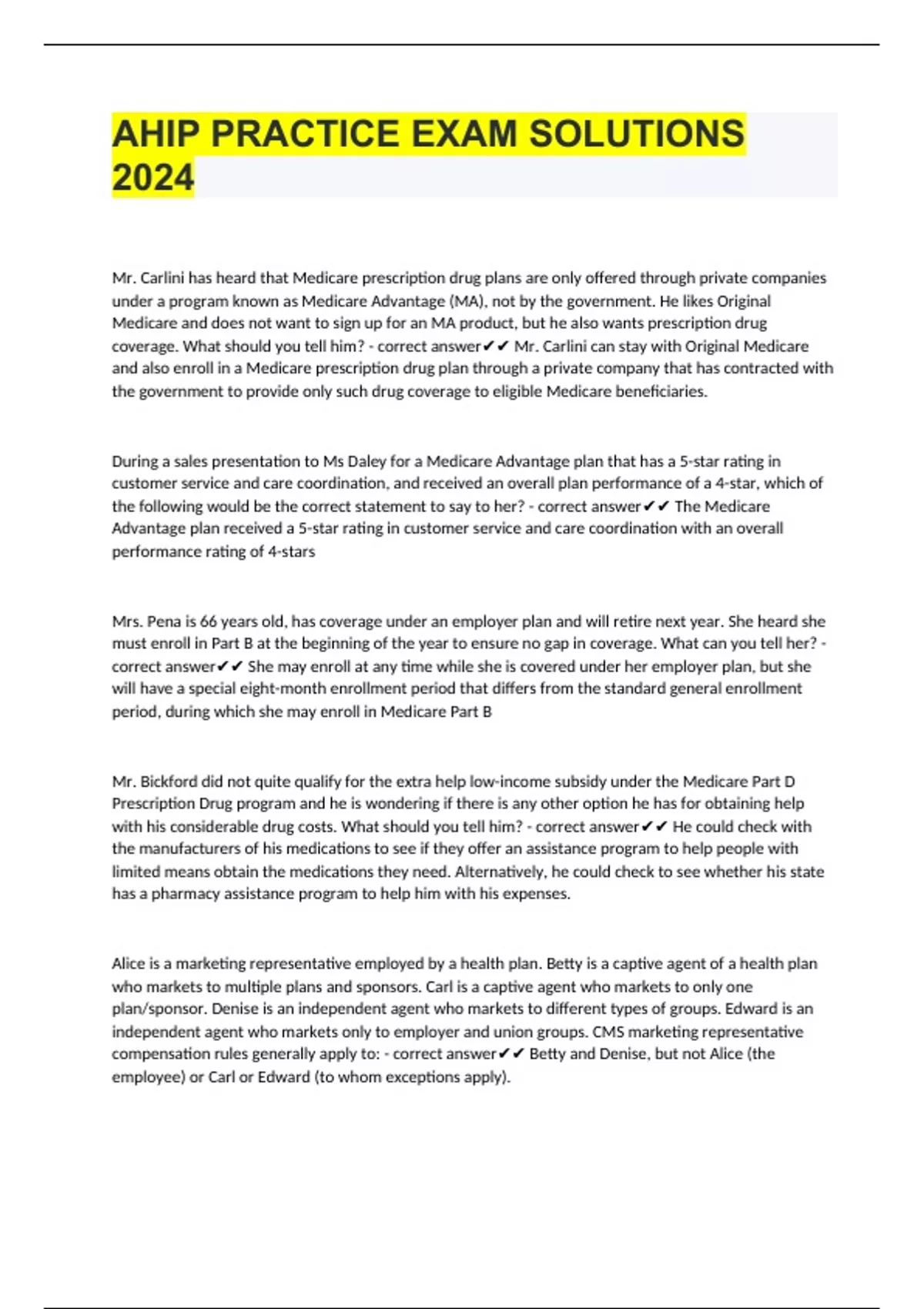AHIP PRACTICE EXAM SOLUTIONS 2024