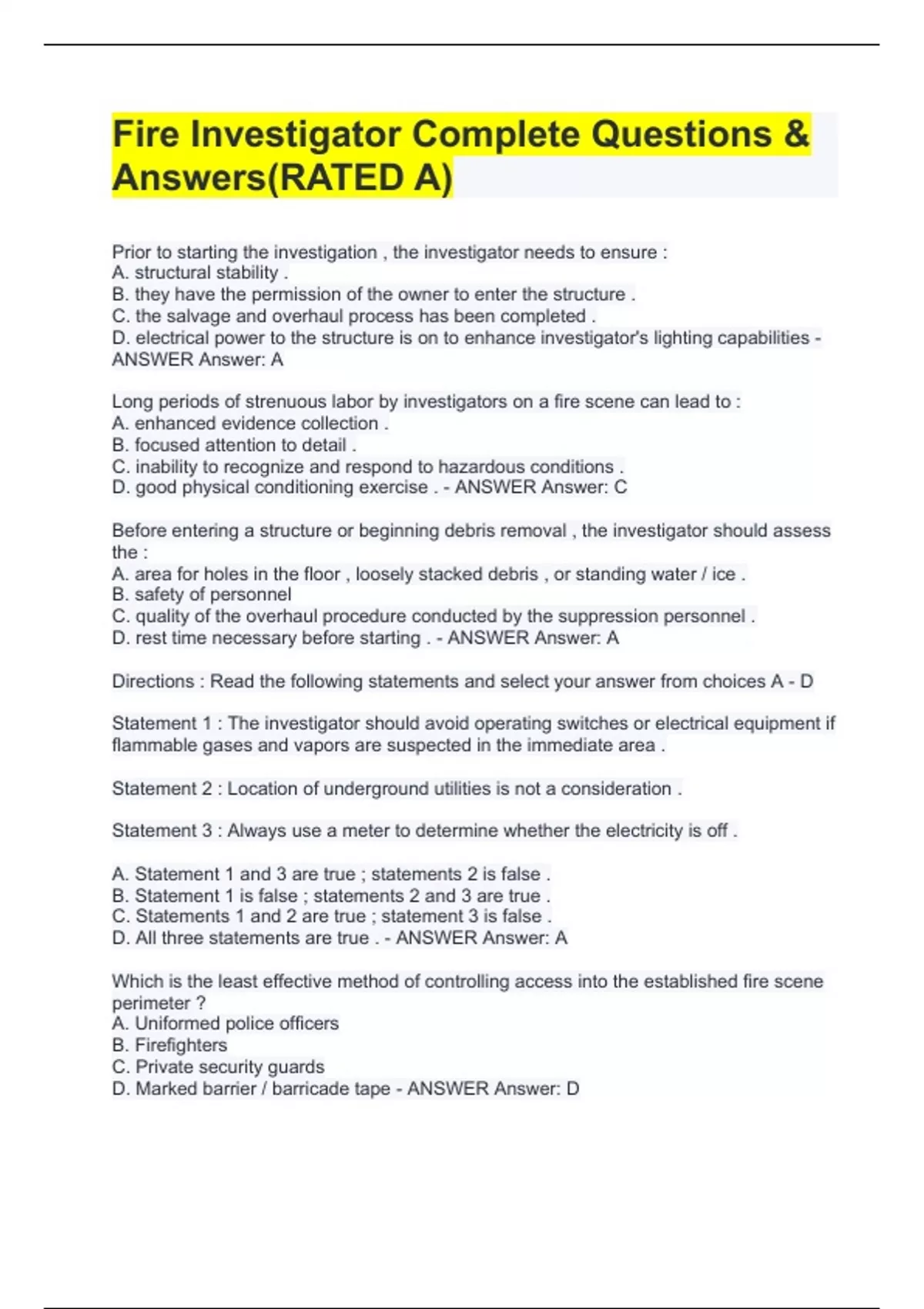 fire investigator complete questions answersrat