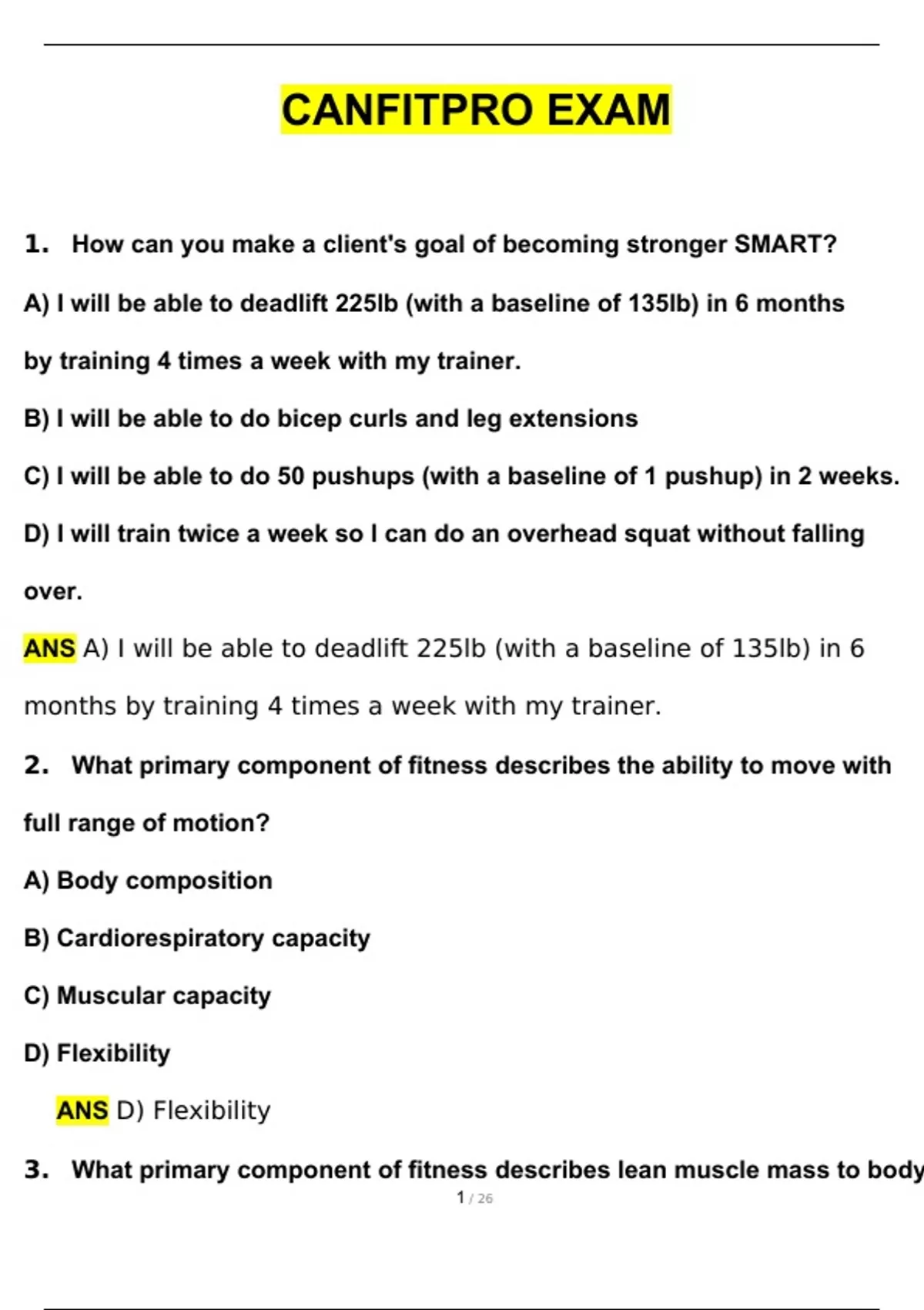 CANFITPRO EXAM Questions with 100% Correct Answers | Updated & Verified