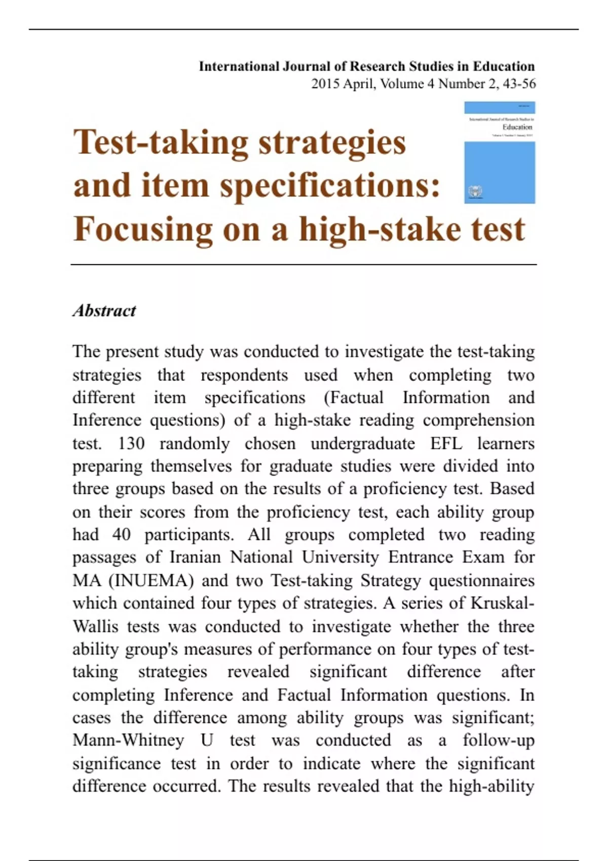 Test-taking strategies and item specifications: Focusing on a high-stake test
