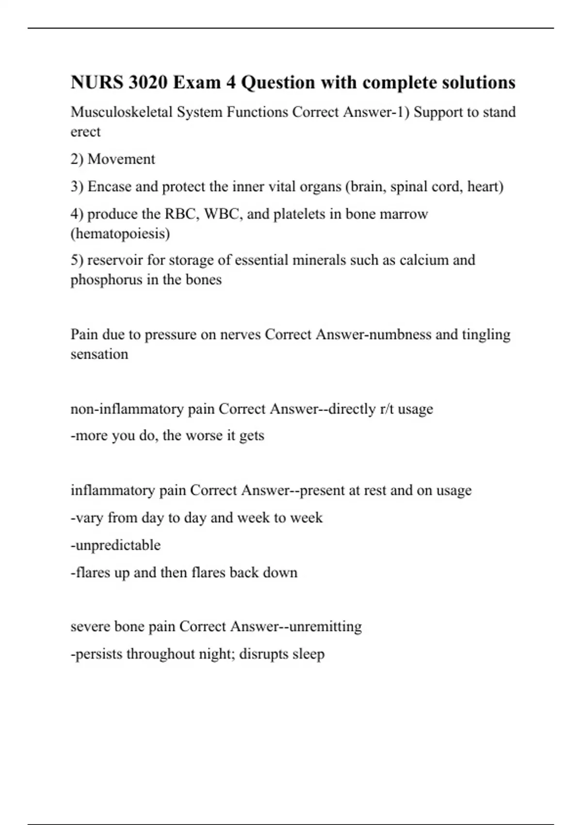 NURS 3020 Exam 4 Question with complete solutions.