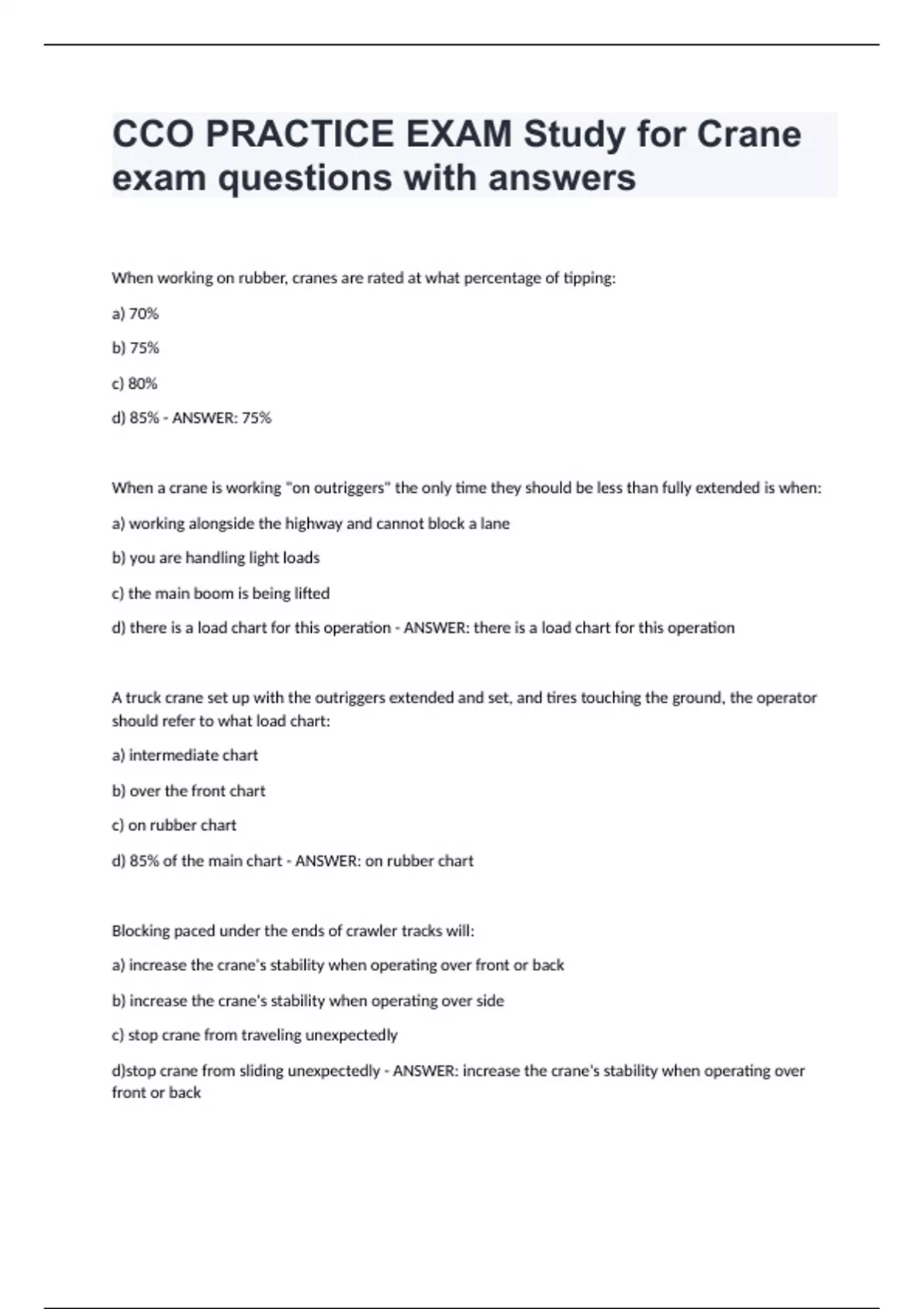 CCO PRACTICE EXAM Study for Crane exam questions with answers
