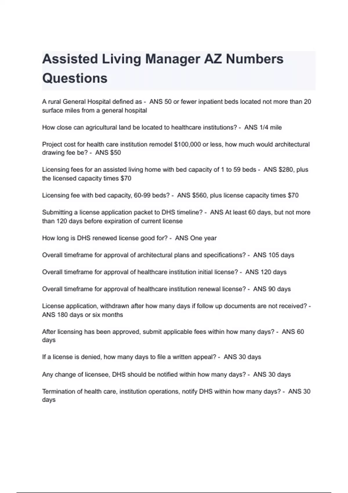 Assisted Living Manager AZ Numbers Questions with Verified Solutions 2024( A+ GRADED 100% VERIFIED).