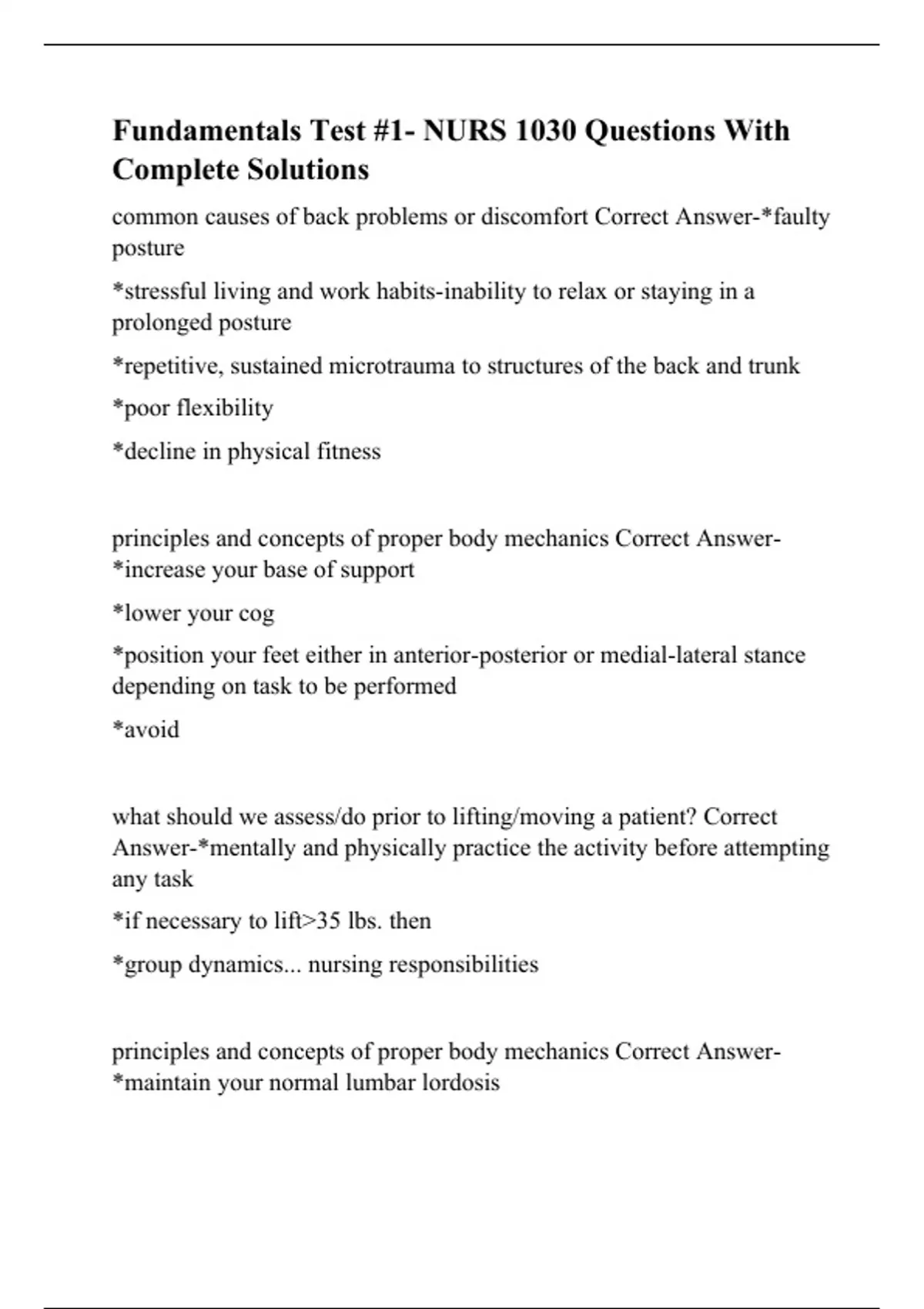 Fundamentals Test #1- NURS 1030 Questions With Complete Solutions