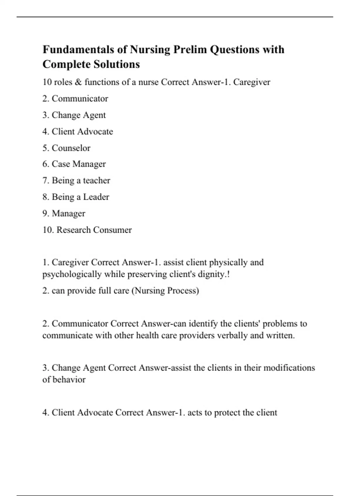 Fundamentals of Nursing Prelim Questions with Complete Solutions
