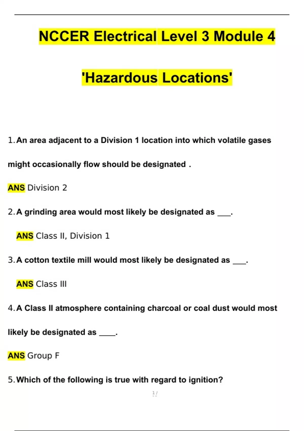 NCCER Electrical Level 3 Module 4 'Hazardous Locations' Questions with 100% Correct Answers | Updated & Verified