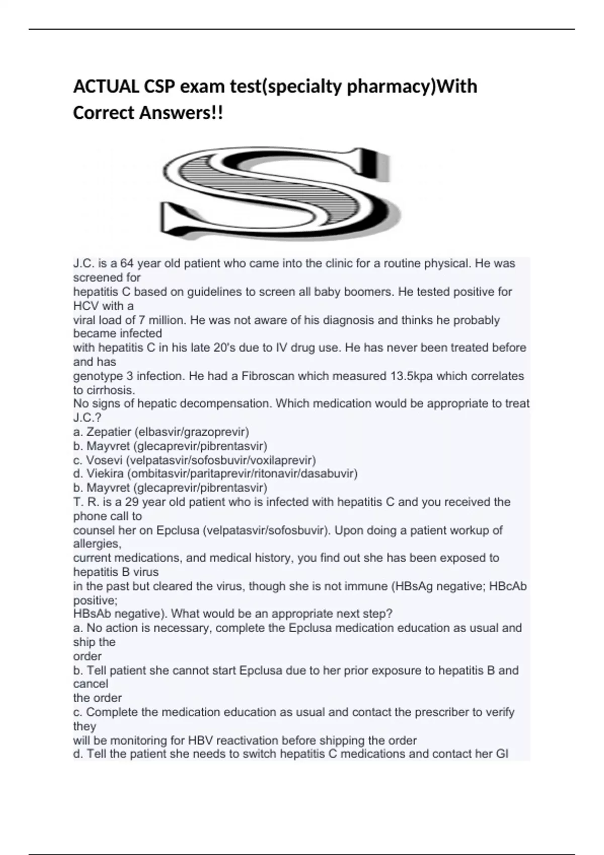 ACTUAL CSP exam test(specialty pharmacy)With Correct Answers!!