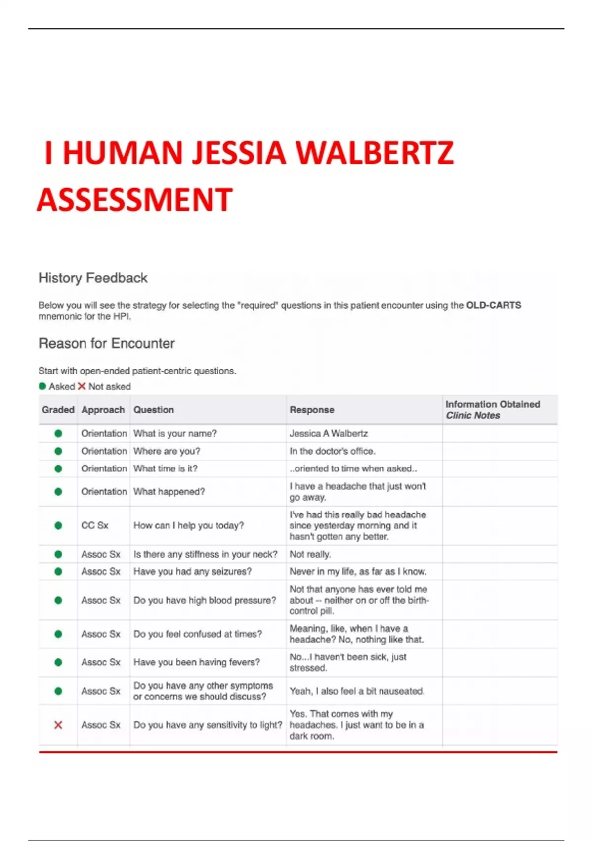 I HUMAN JESSIAWALBERTZ ASSESSMENT