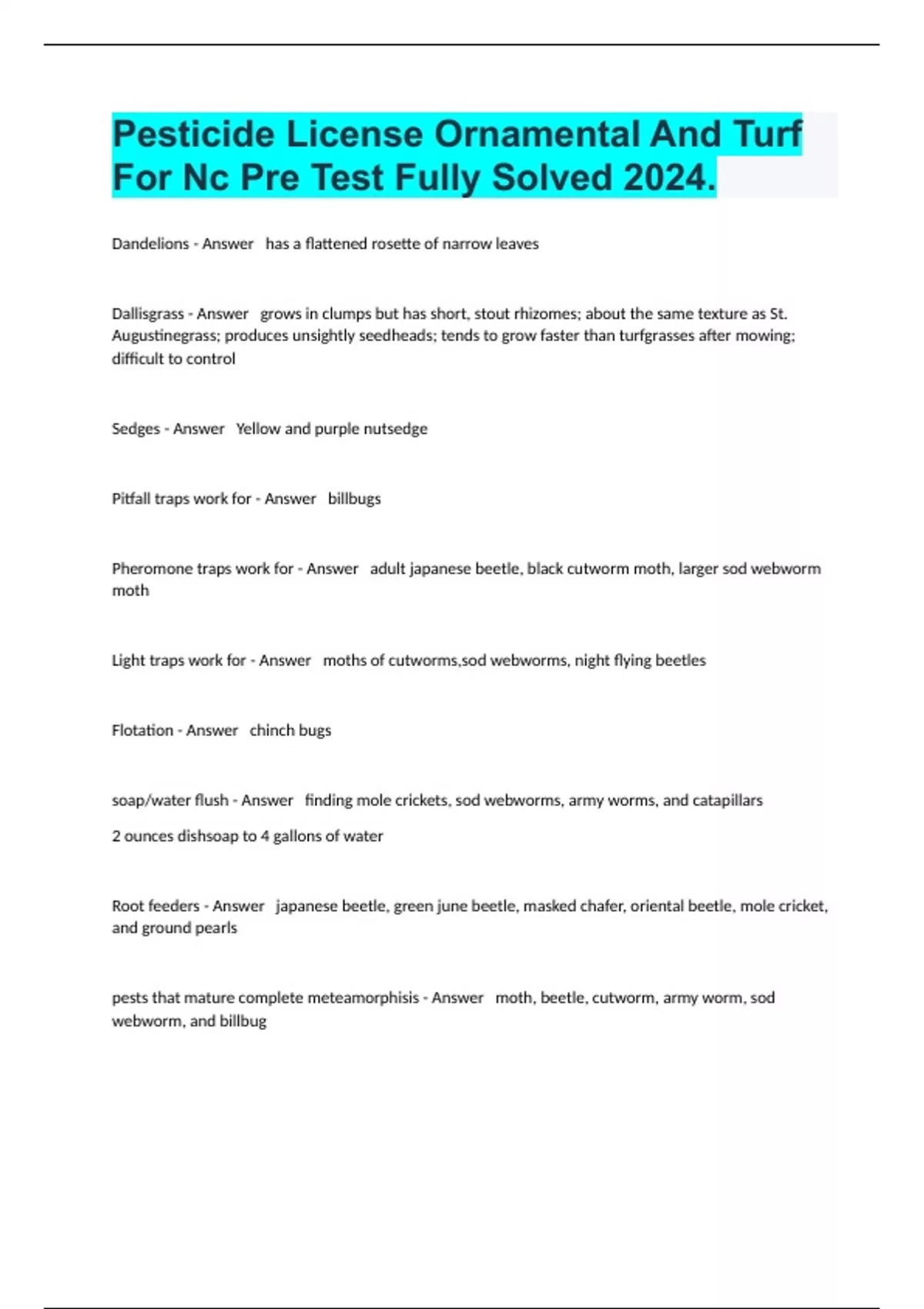 Pesticide License Ornamental And Turf For Nc Pre Test Fully Solved 2024.