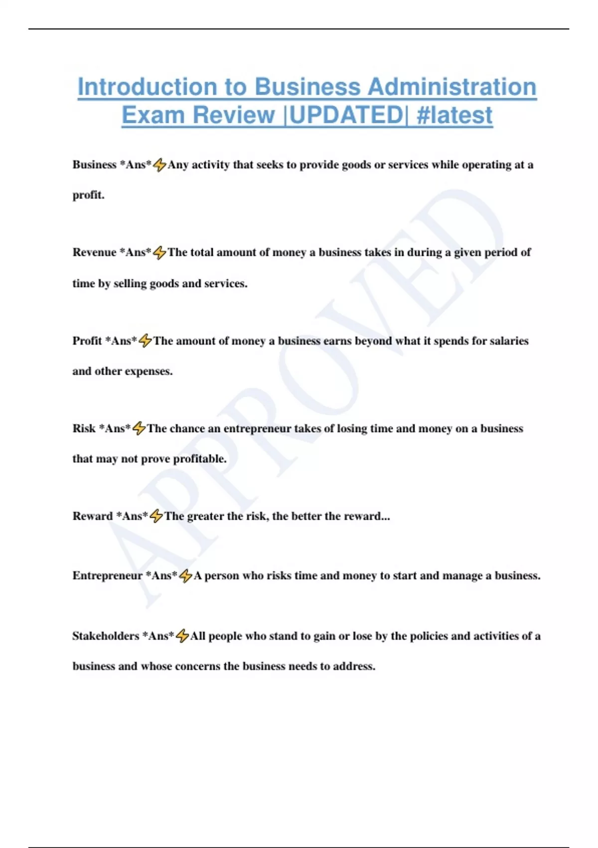 Introduction to Business Administration Exam Review |UPDATED| #latest