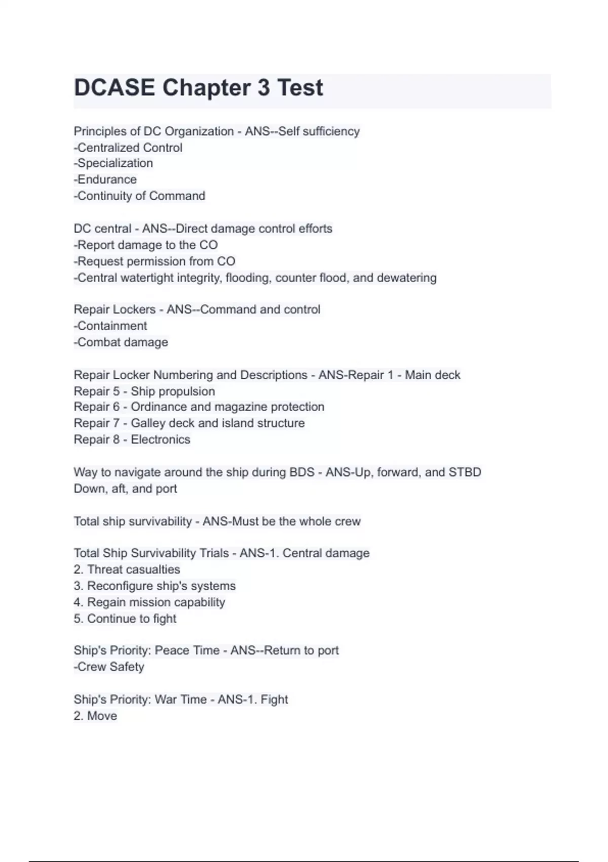 dcase chapter 3 test with complete solution
