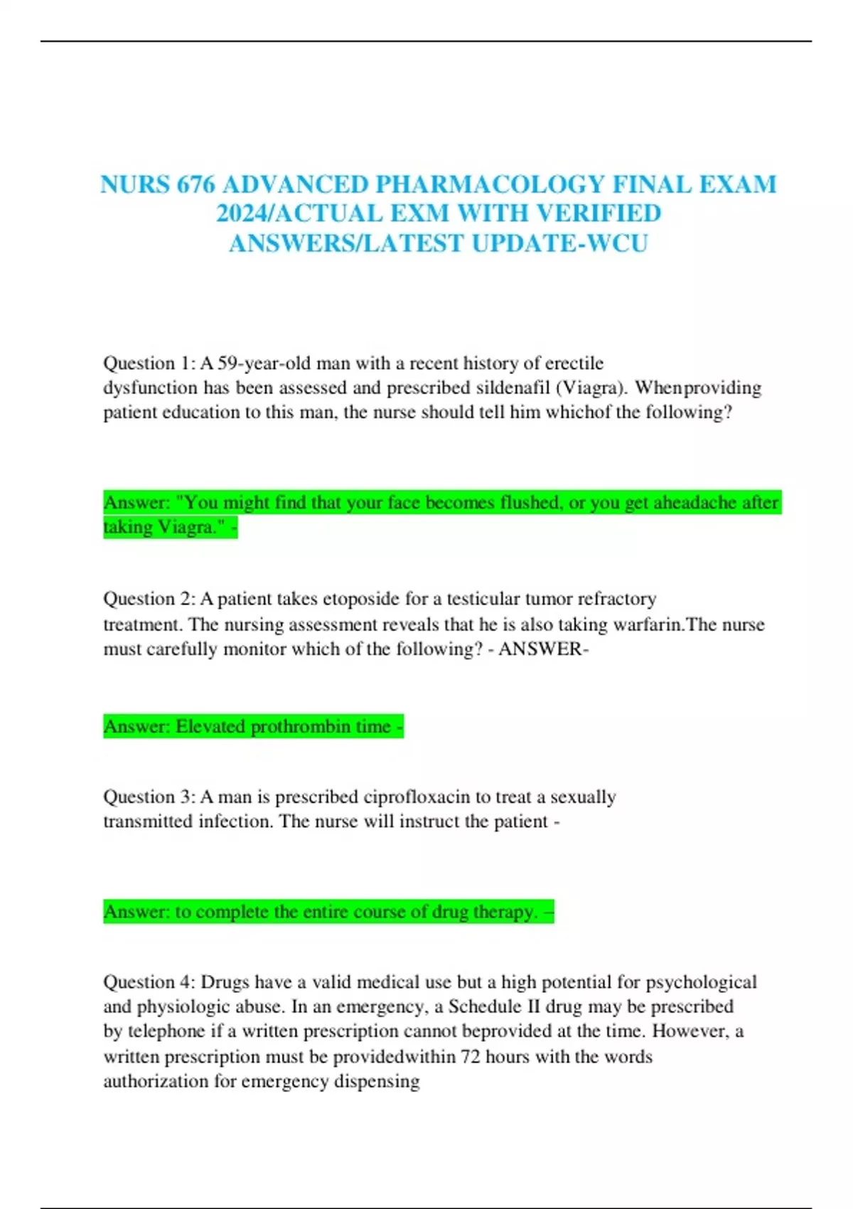 NURS 676 ADVANCED PHARMACOLOGY FINAL EXAM 2024/ACTUAL EXM WITH VERIFIED ANSWERS/LATEST UPDATE-WCU