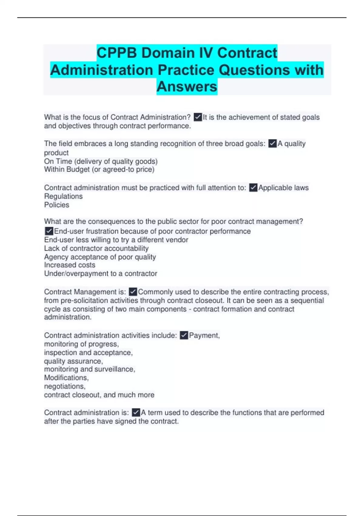 CPPB Domain IV Contract Administration Practice Questions with Answers
