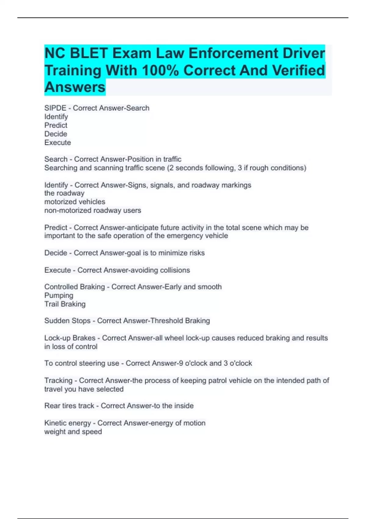 NC BLET Exam Law Enforcement Driver Training With 100% Correct And Verified Answers