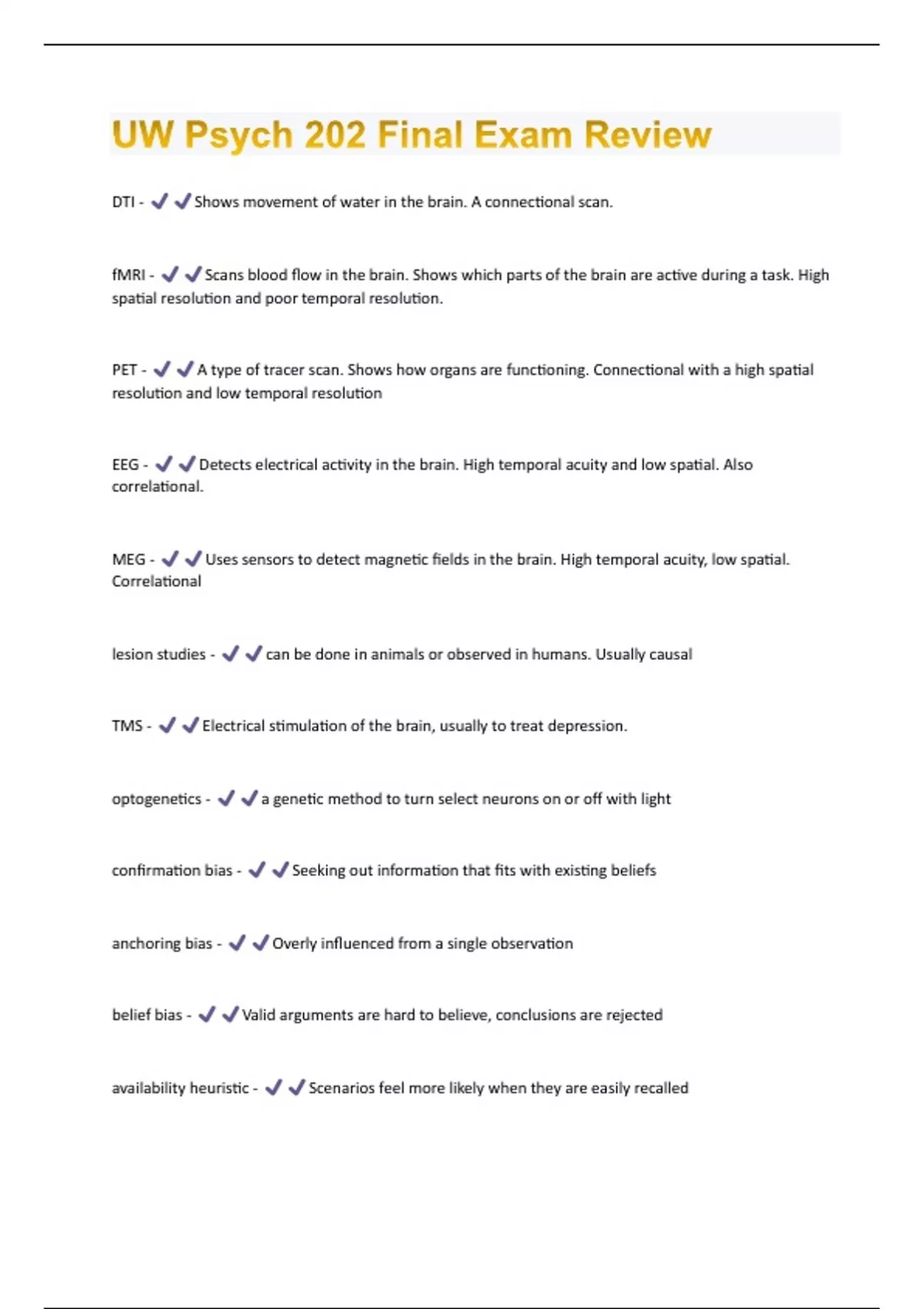 UW Psych 202 Final Exam Review Questions & Answers Already Graded A+