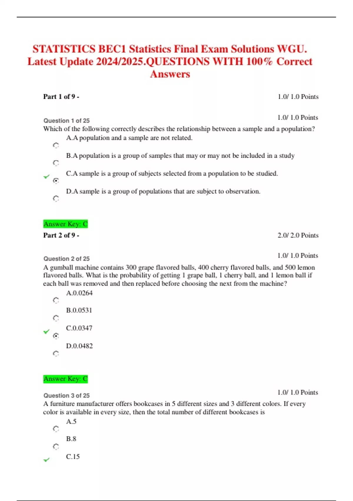 STATISTICS BEC1 Statistics Final Exam Solutions WGU. Latest Update 2024/2025.QUESTIONS WITH 100% Correct Answers