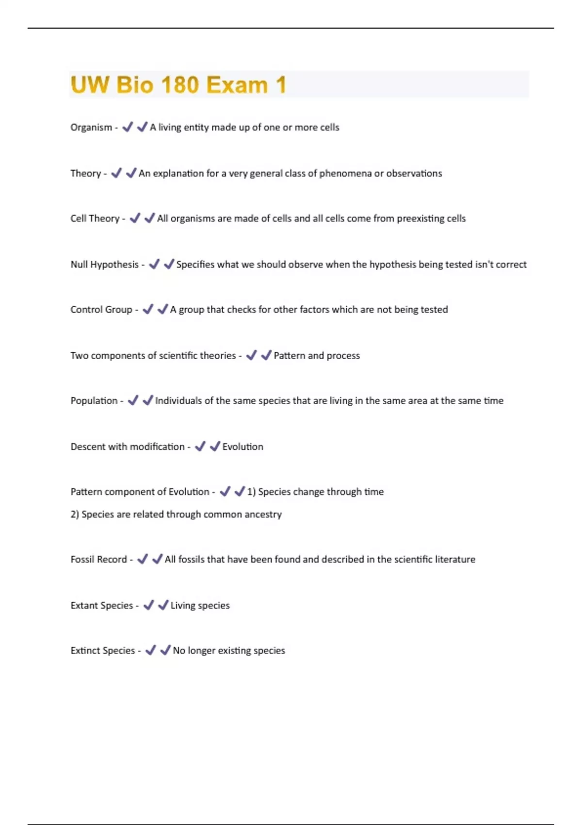 UW Bio 180 Exam 1 Questions & Answers Already Graded A+