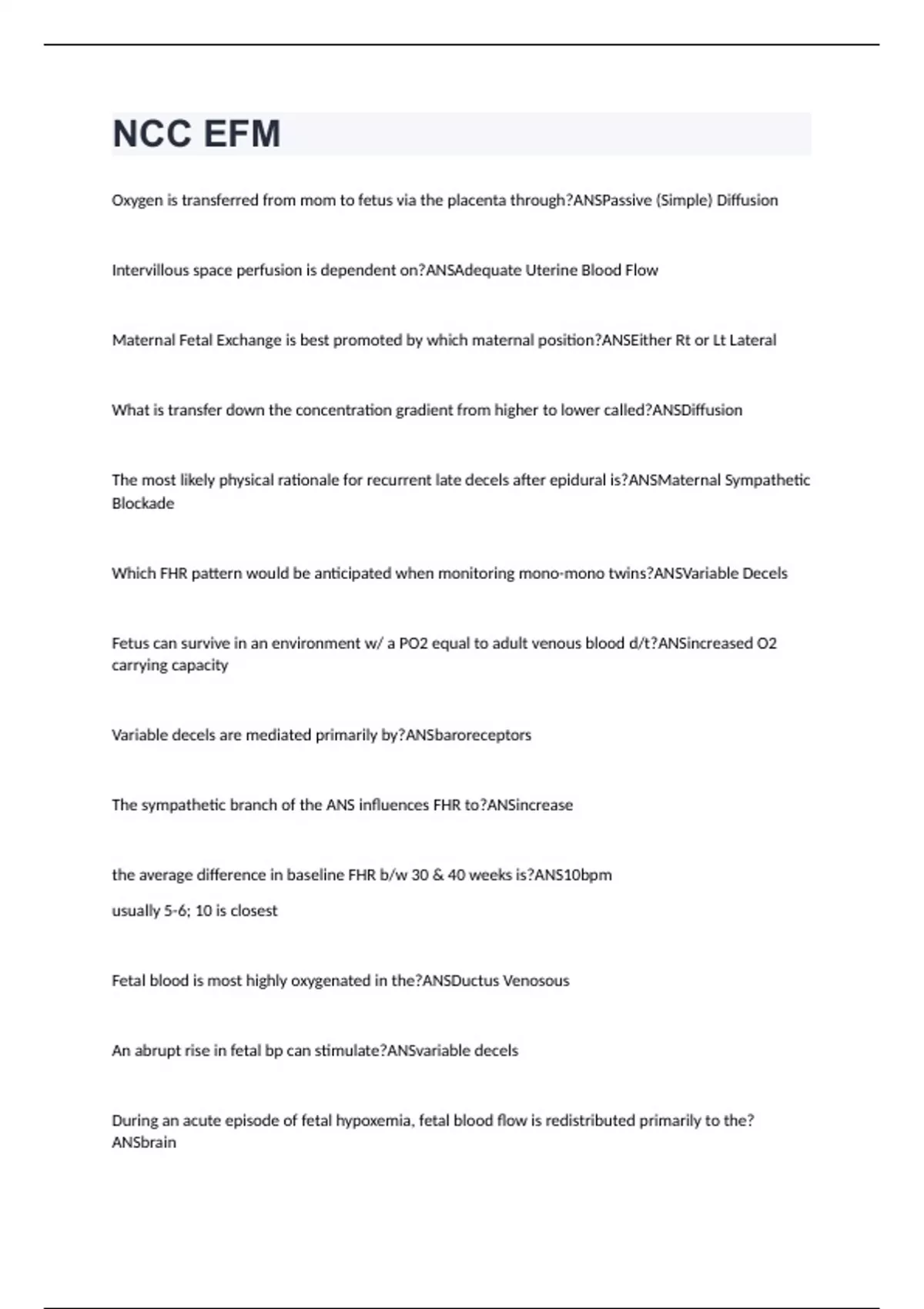NCC EFM Exam Questions With Correct Answers 2024 Latest Edition