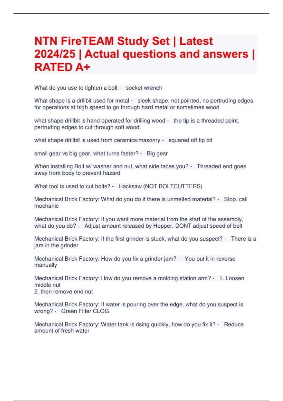 NTN FireTEAM Study Set | Latest 2024/25 | Actual questions and answers | RATED A+