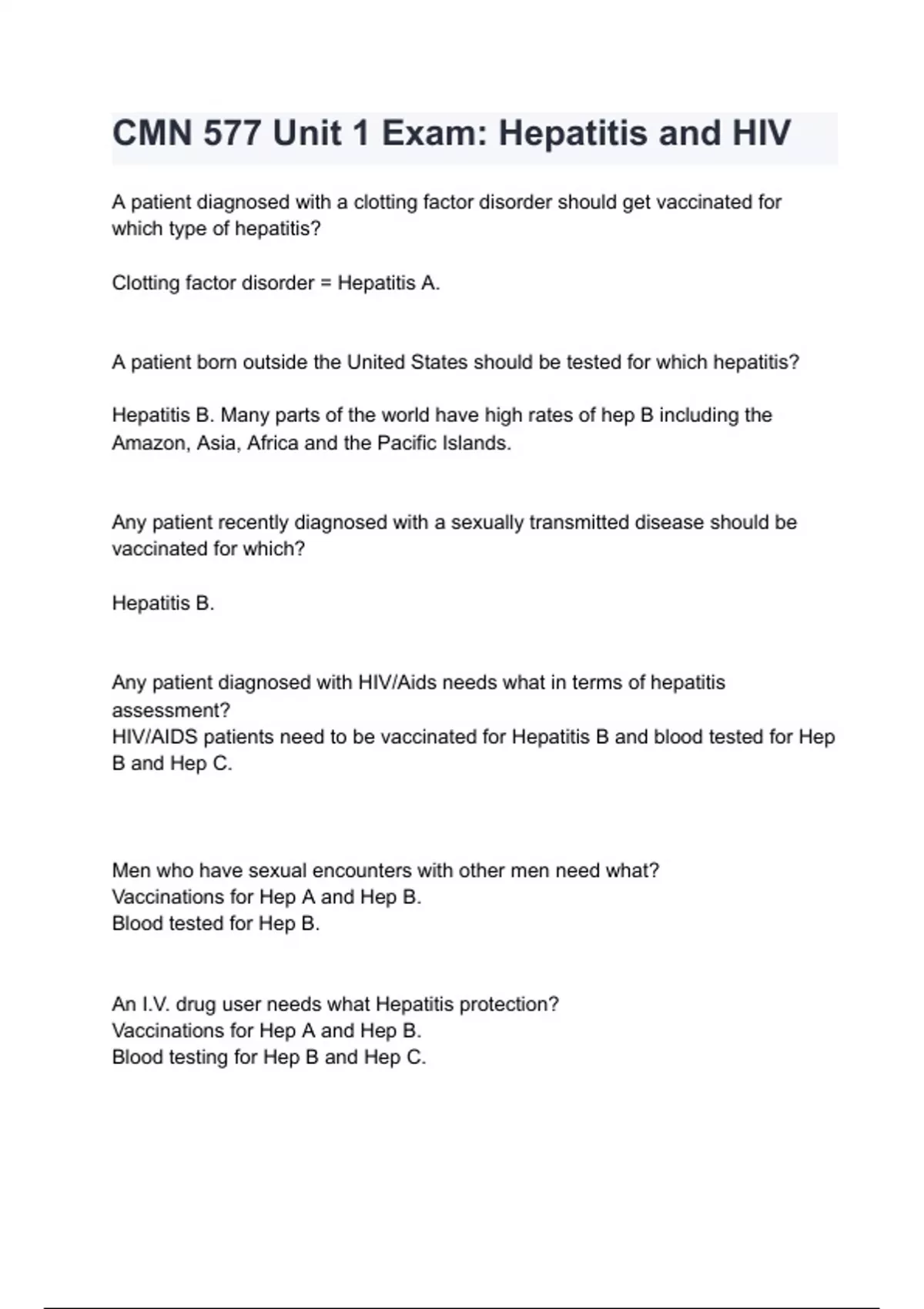 cmn 577 unit 1 exam hepatitis and hiv